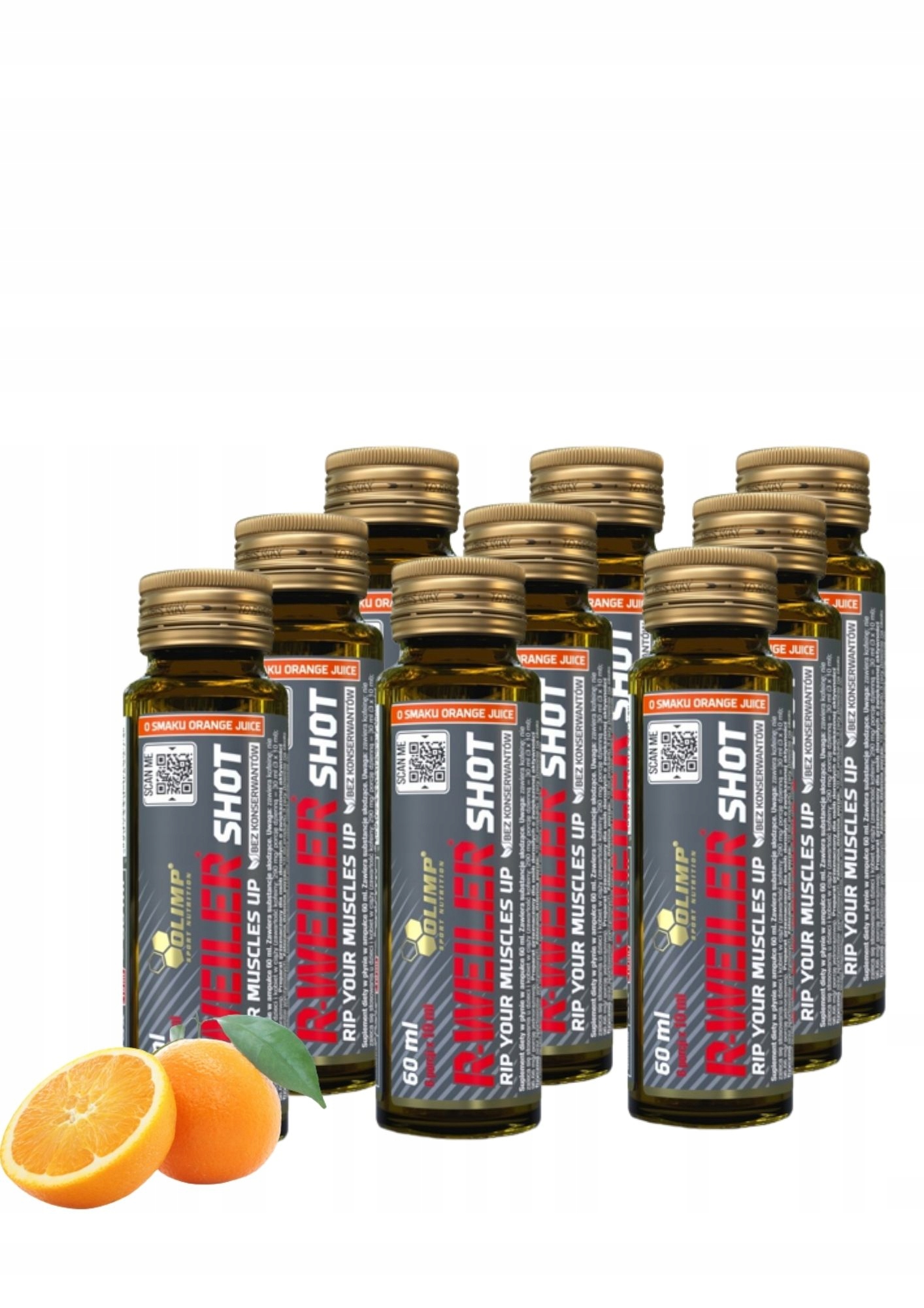 OLIMP R-WEILER SHOT 9x60ml скляна ампула PRE-WORKOUT REDWEILER помаранчевий