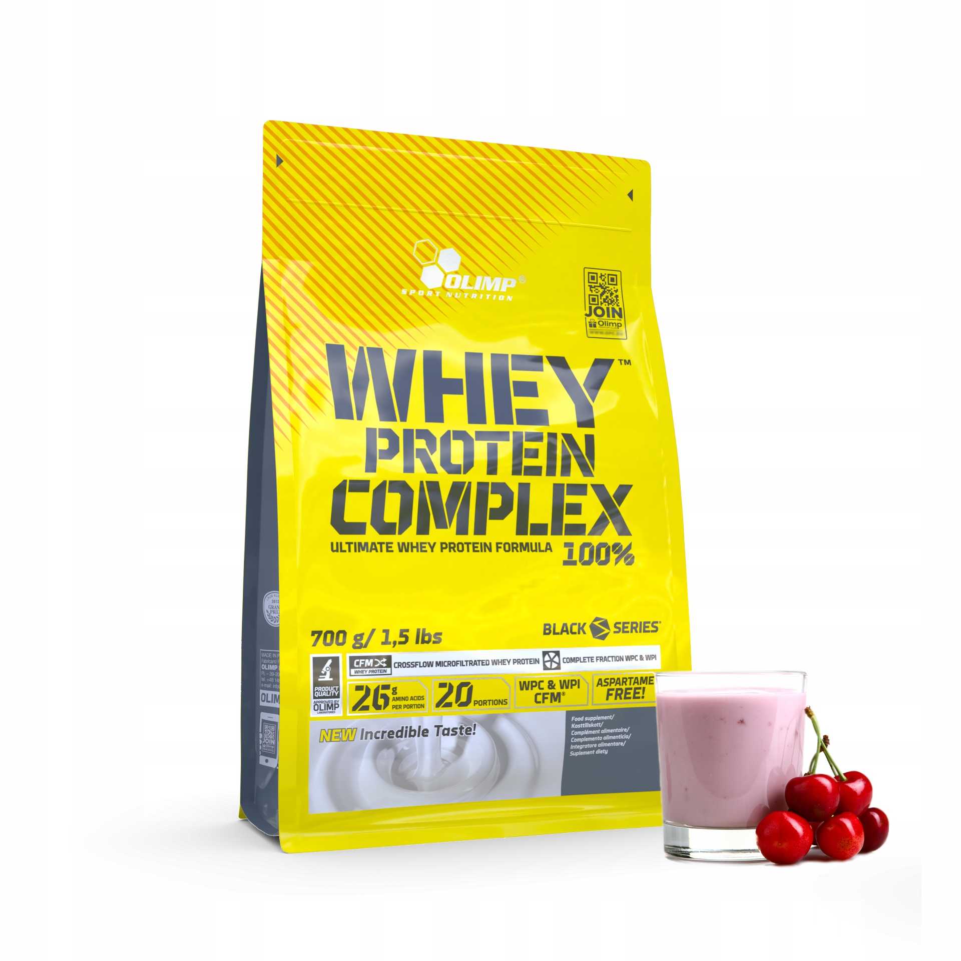 OLIMP WHEY PROTEIN COMPLEX 100%» Дієтична добавка. Високопротеїновий порошковий концентрат. Містить цукор і підсолоджувачі.