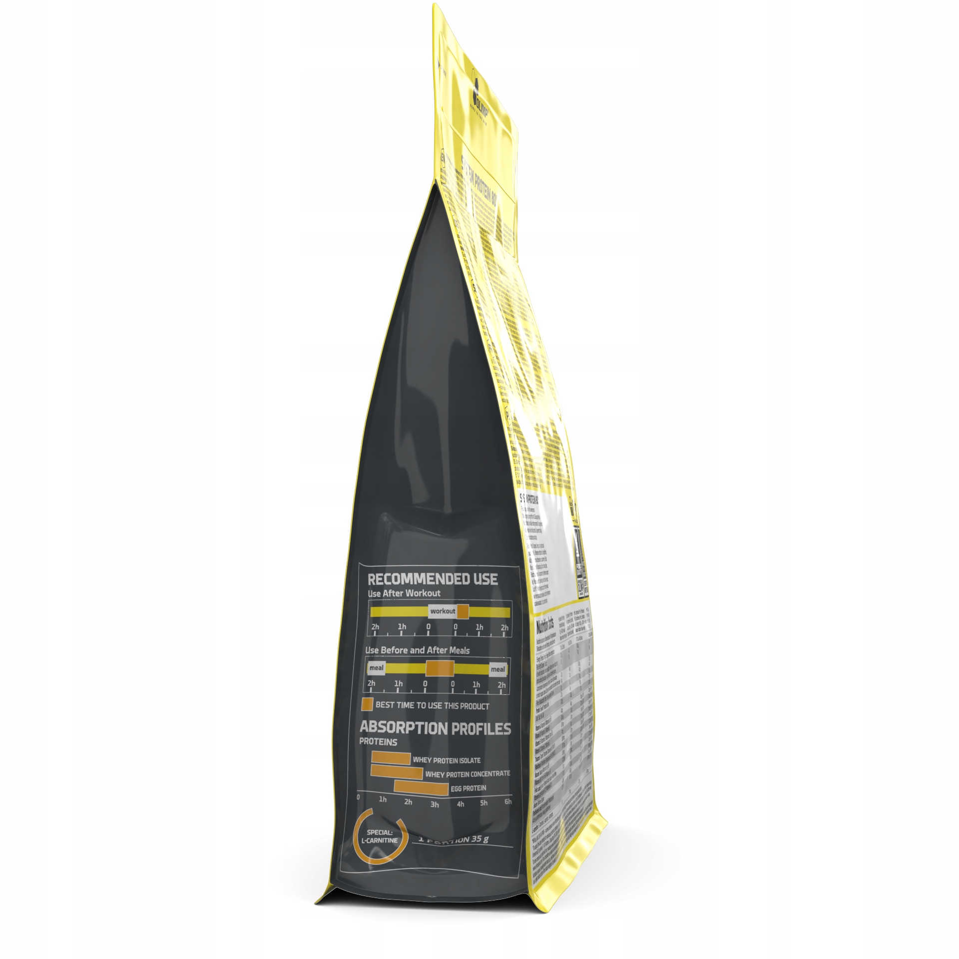 Склад високоякісного концентрату сироваткового протеїну (WPC), сироваткового протеїну ізолят (WPI) і ультрафільтрований яєчний альбумін, збагачений L-карнітином. Комбінація концентрату та ізоляту сироваткових протеїнів і яєчного альбуміну у відповідній пропорції призводить до активного складу білків з різною кінетикою засвоєння, що забезпечує тривале збереження цінності вільних амінокислот в організмі. Наукові дослідження довели, що білок сприяє зростанню або збереженню м’язової маси.