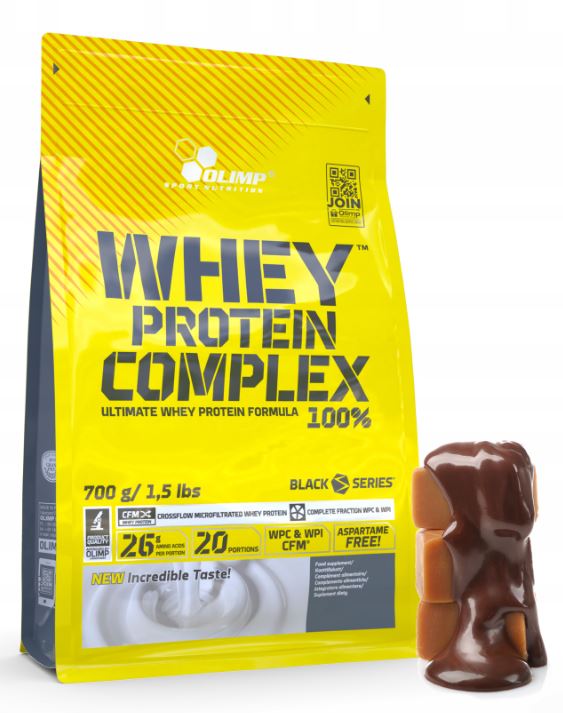 Olimp Whey Protein Complex 700g Chocolate-Caramel – протеїновий порошок, призначений для приготування коктейлю. Його можна вживати після тренувань і протягом дня як частину збалансованої дієти. Смак і консистенція дозволяють використовувати продукт і в рецептах - для вівсяної каші, млинців або холодних сирників.
