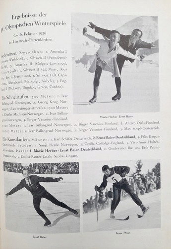 Опис: Це офіційна публікація організаційних комітетів Зимових ігор у Гарміш Партенкірхен та Літо в Берліні, які відбулися в 1936 році. Ця олімпійська книга була опублікована в 1935 році і є попереднім переглядом обох заходів. Він представляє, серед іншого, найважливішу інформацію про Буття та історію сучасних Олімпійських ігор, оголошення змагань на окремих змаганнях, нагадуючи про хід олімпійських змагань у 1932 р.