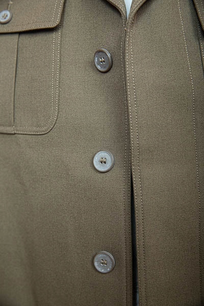 : закріплюється 5 критою кнопками. У ньому є 4 кишені (2 внутрішні та 2 зовнішні), закріплені поодинокими кнопками. Всередині в ній є підкладка, ідеально підходить для шанувальників військового стилю.