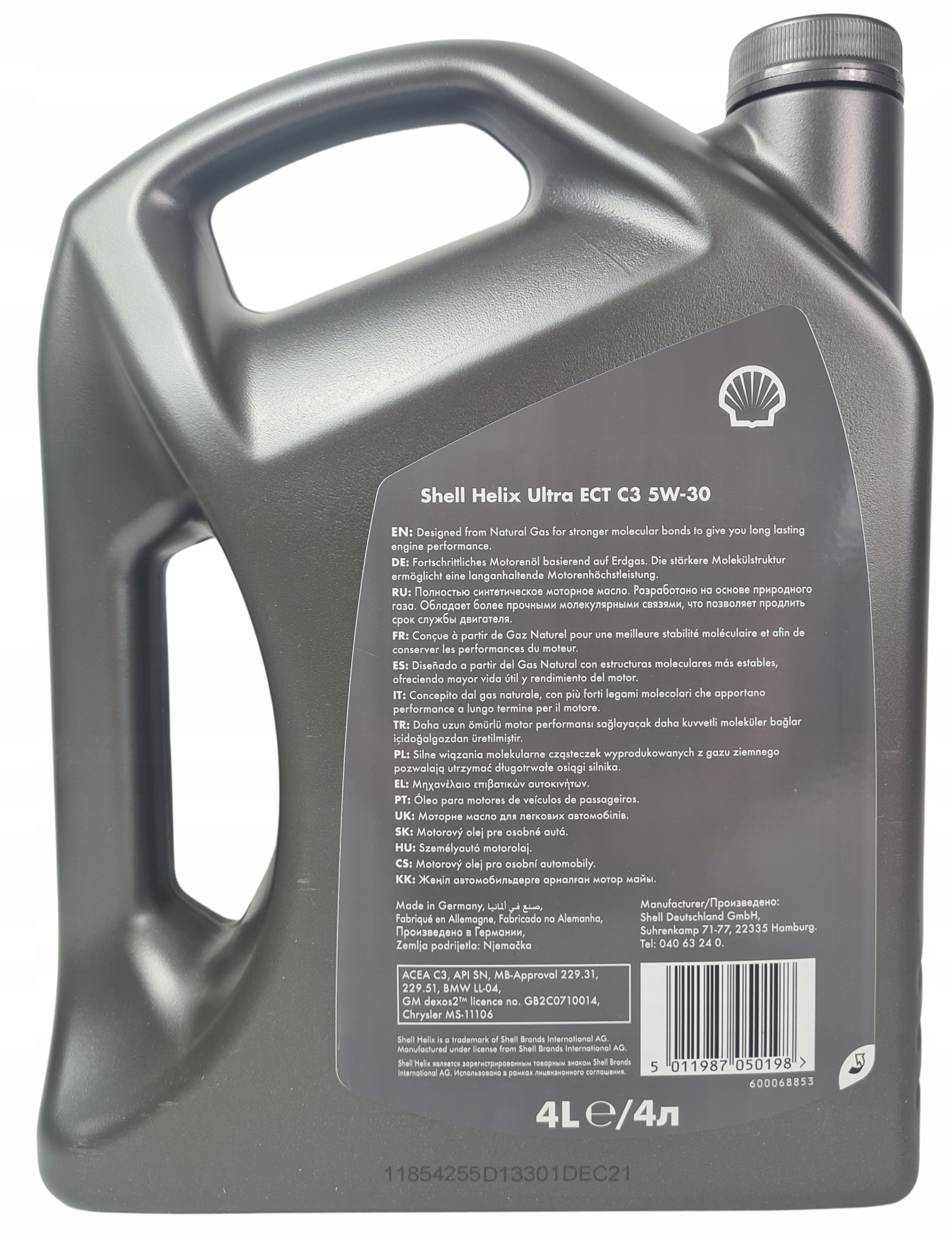 - ✔️Shell Helix Ultra ECT C3 – це повністю синтетична моторна олива, розроблена з використанням найсучасніша технологія Shell, сумісна з системами контролю вихлопних газів, захистом каталітичних нейтралізаторів бензинових автомобілів і сажових фільтрів дизельних автомобілів. Він захищає від утворення золи, яка може заблокувати вихлопну систему та знизити ефективність двигуна.