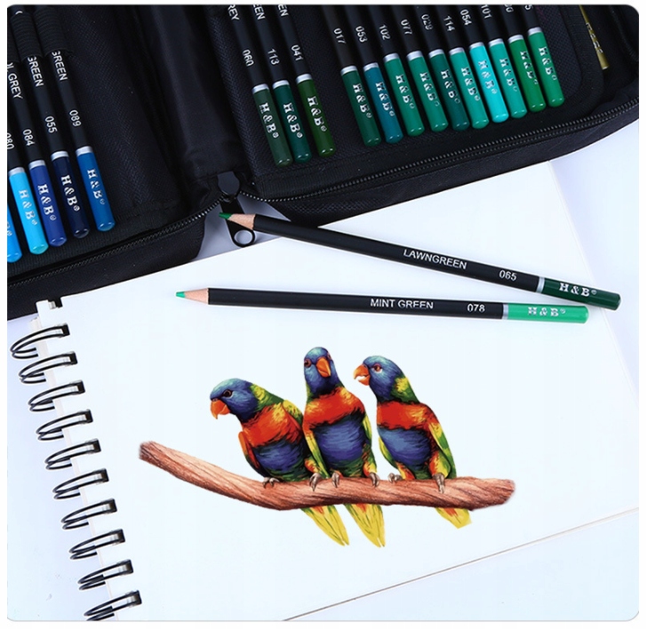 Набір з 72 професійних олівців H&B в практичному пеналі. Багата палітра з 72 прекрасних унікальних кольорів дозволяє підібрати саме той колір, який вам потрібен. Високоякісні інтенсивні пігменти відповідають за надзвичайно яскраві та чіткі кольори. Набір призначений як для професіоналів, так і для людей, які тільки починають займатися малюванням.