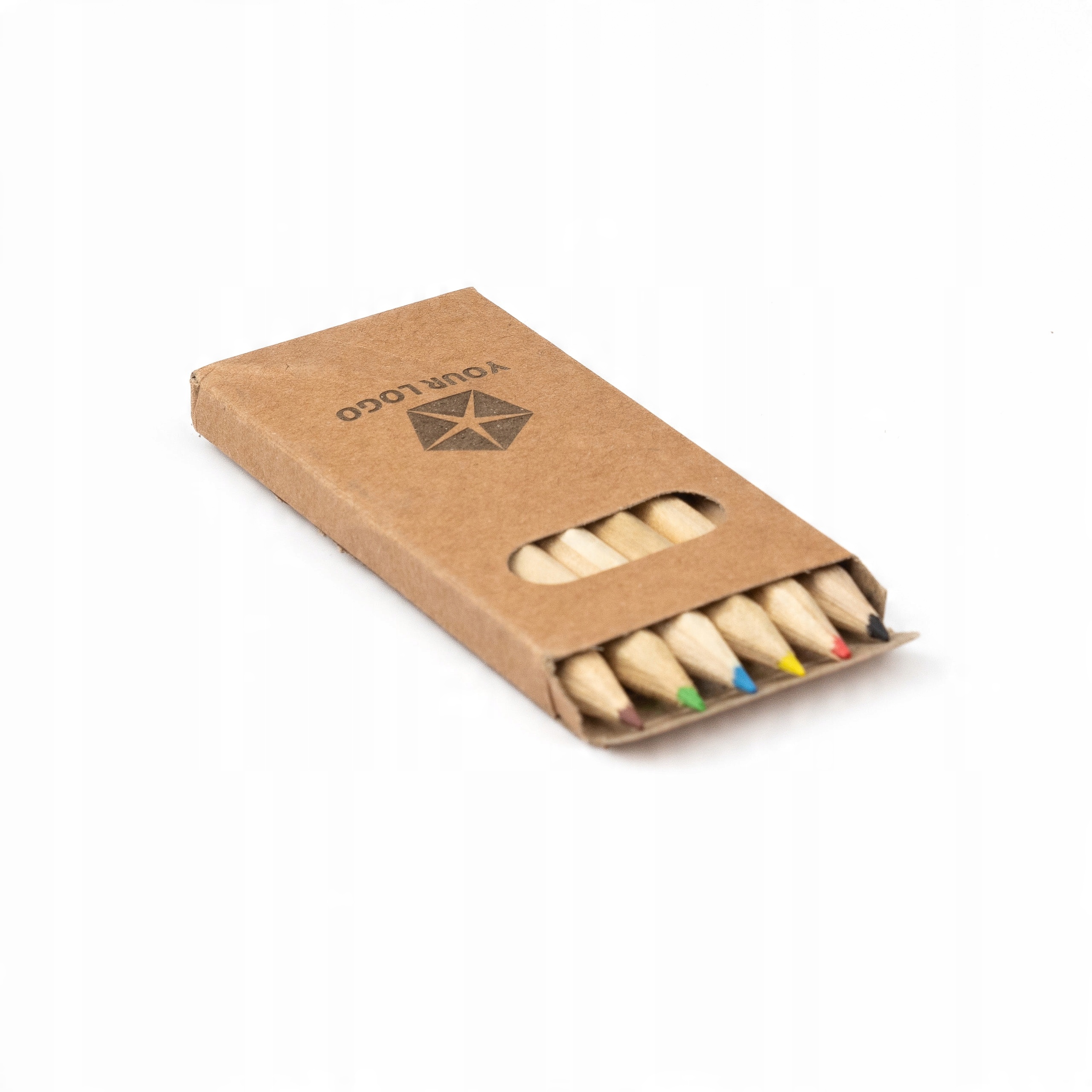 Шість різнокольорових олівців, укладених у картонну упаковку, на яку ми можемо додати власний принт. Візерунок або напис наноситься на виріб за допомогою тамподруку. Цей метод гарантує дуже міцний друк, стійкий до стирання. В наявності біла та картонна упаковка. Олівці виготовлені з дерева і не мають жодних написів чи знаків.