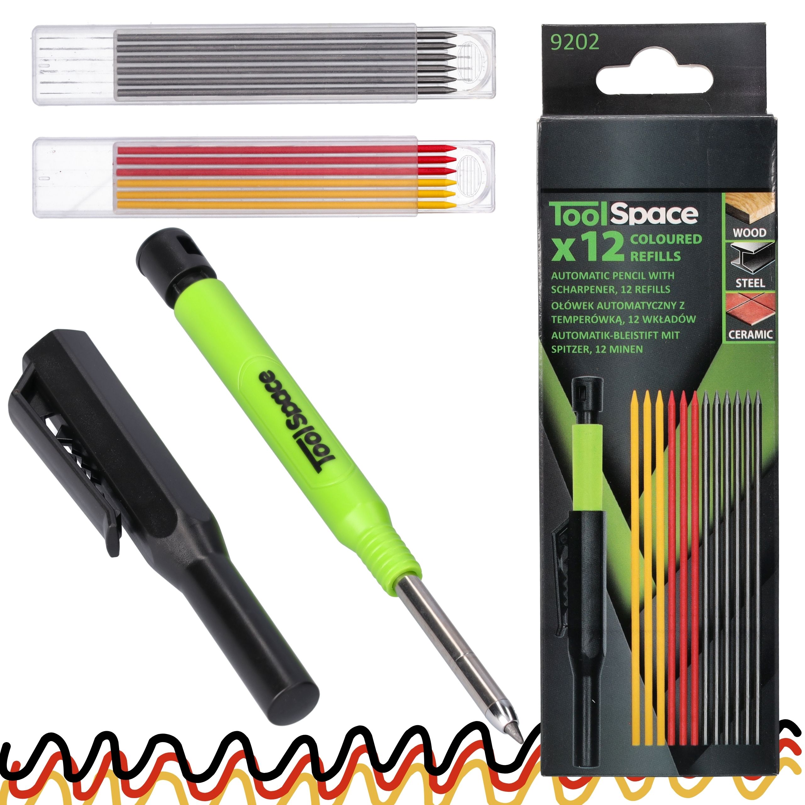 ОЛІВЕЦЬ АВТОМАТИЧНИЙ СТОЛЯРНИЙ ТЕМПЕРАТОР 12 КОЛЬОРОВИХ КАРТРИДЖІВ СТИЛУС БУДІВЕЛЬНИЙ