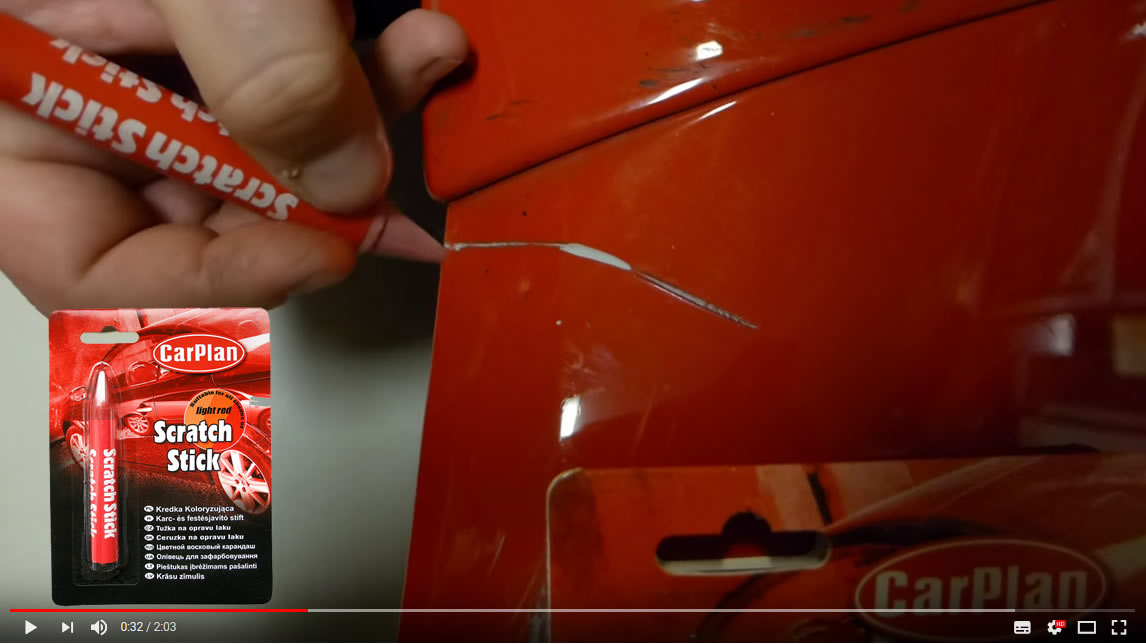 Кольоровий олівець Scrach Stick призначений для маскування великих подряпин, подряпин і відколів, що виникають на пофарбованих поверхнях. Захищає пошкоджену ділянку від окислення та корозії. Містить акриловий лак. Простий у використанні, ідеально підходить для всіх типів лаків. Доступний у 8 основних кольорах.