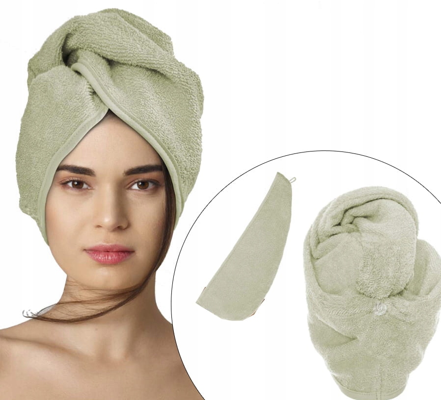 Оливковий тюрбан рушник для волосся кнопка