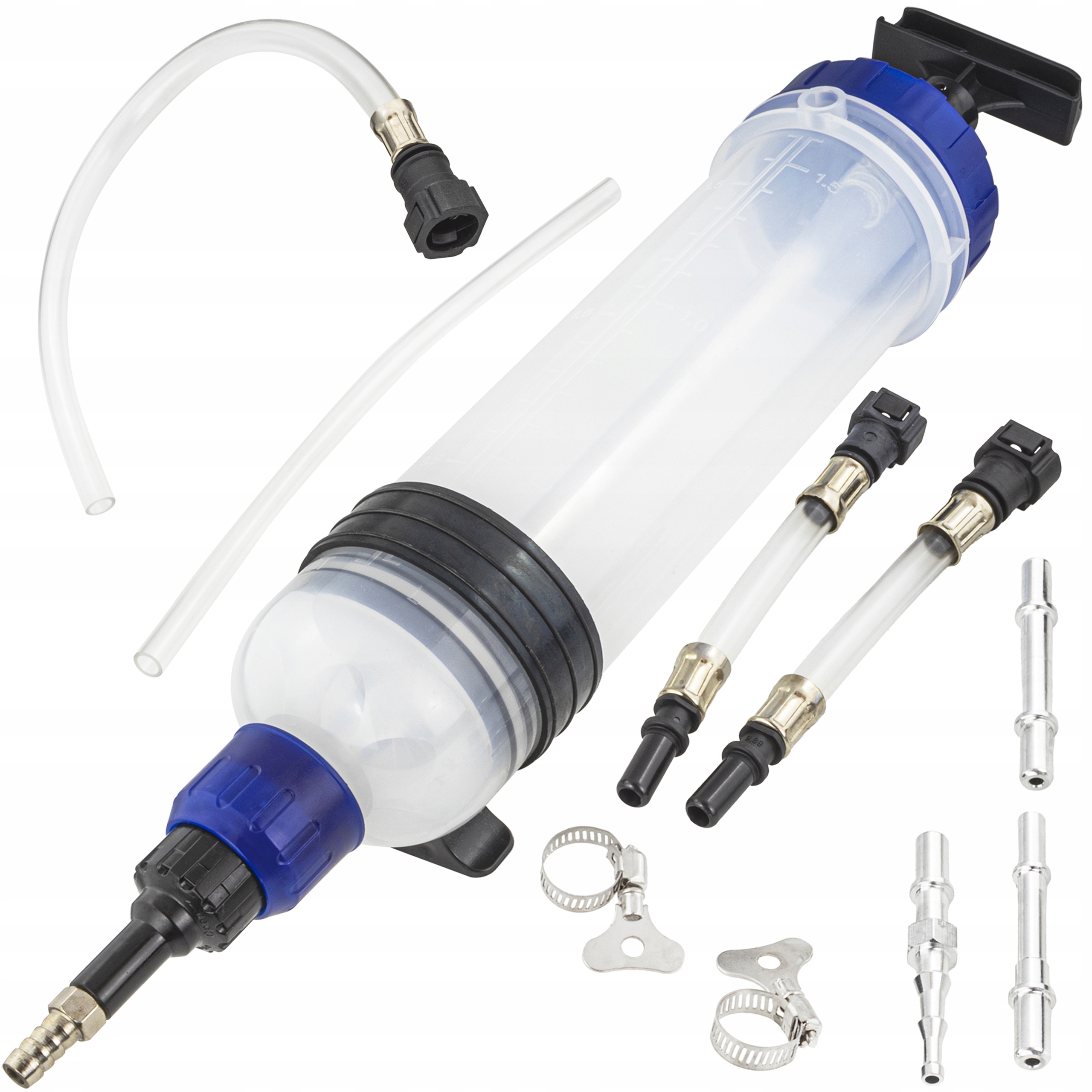 Масляний шприц для відсмоктування масла, гальмівної рідини і т.д. Незамінний інструмент в кожній автомайстерні. Призначений для відсмоктування та впорскування масла та рідин у важкодоступні місця. Поршень має ущільнення з високоякісної гуми, стійкої до тривалого впливу мастила та масла. Роз’єми об’ємом 1,5 л для автомобілів PSA/Vauxhall/Opel і два універсальних роз’єми для старих автомобілів. Шприц для заміни робочих рідин, заливки масла в коробку передач і т.д. Запобігає витіканню