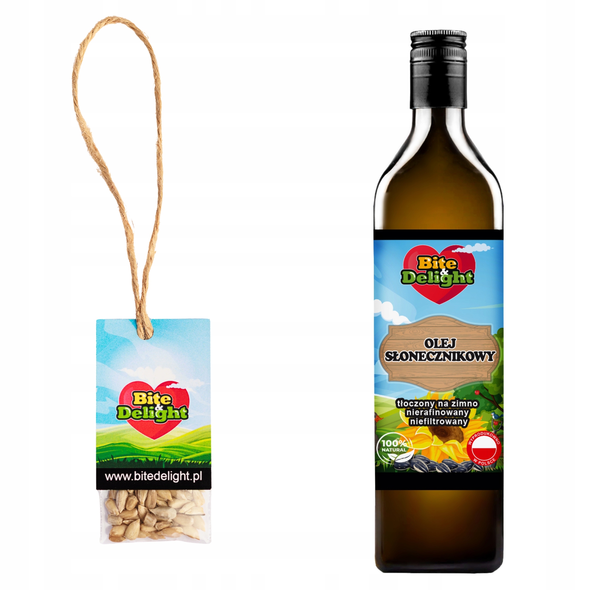 Кожна пляшка олії Bite Delight супроводжується зразком зерна, з якого була віджата олія.