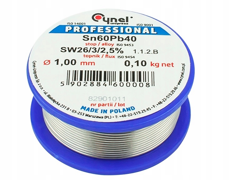 Сплав S-Sn60Pb40, отриманий при першій плавці олова та свинцю, у процесі безперервного лиття без доступу повітря, потім екструдований, що забезпечує видалення оксидів. Припій CYNEL в основному використовується в електронній промисловості, для виробництва стандартних електронних пристроїв і компонентів, електротехніки та для пайки елементів з олов'яним, олов'яно-свинцевим, кадмієвим, цинковим і срібним покриттями.