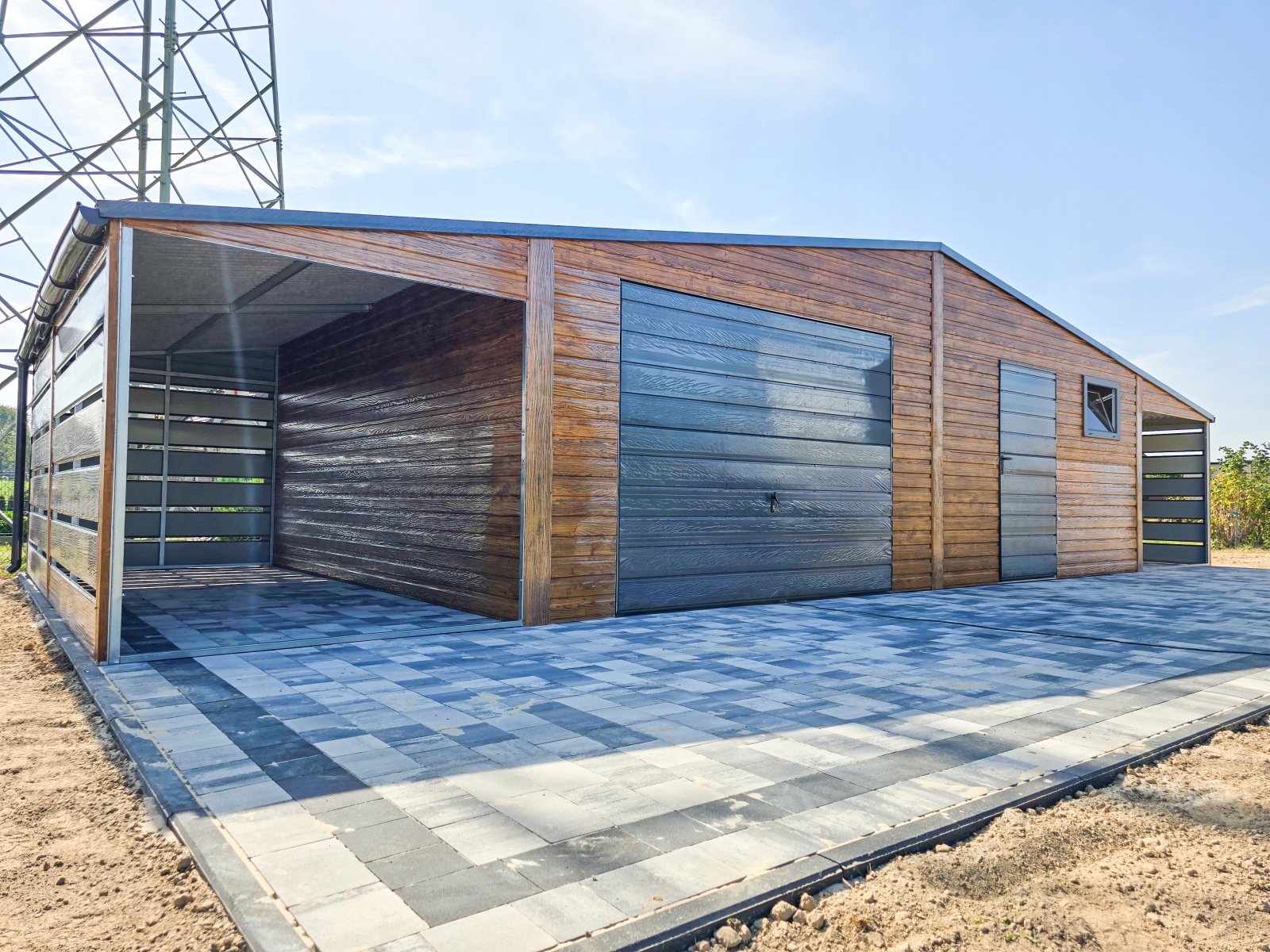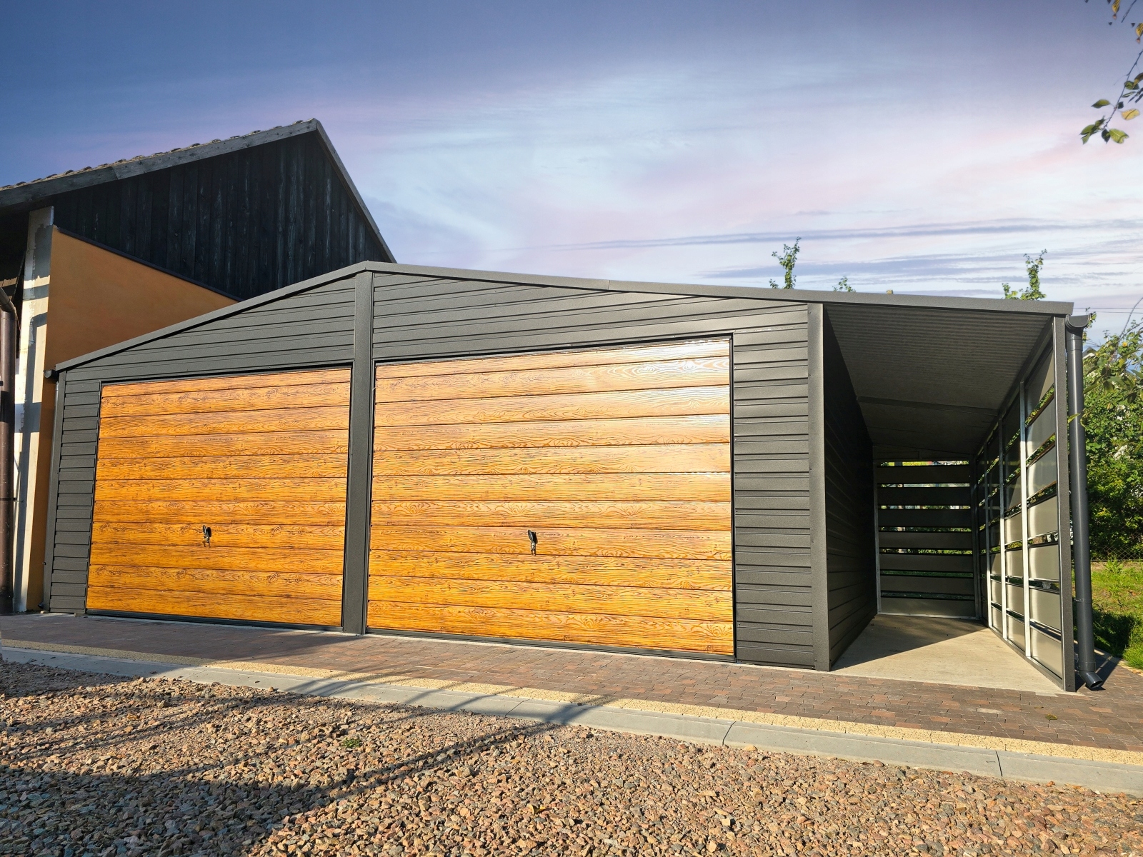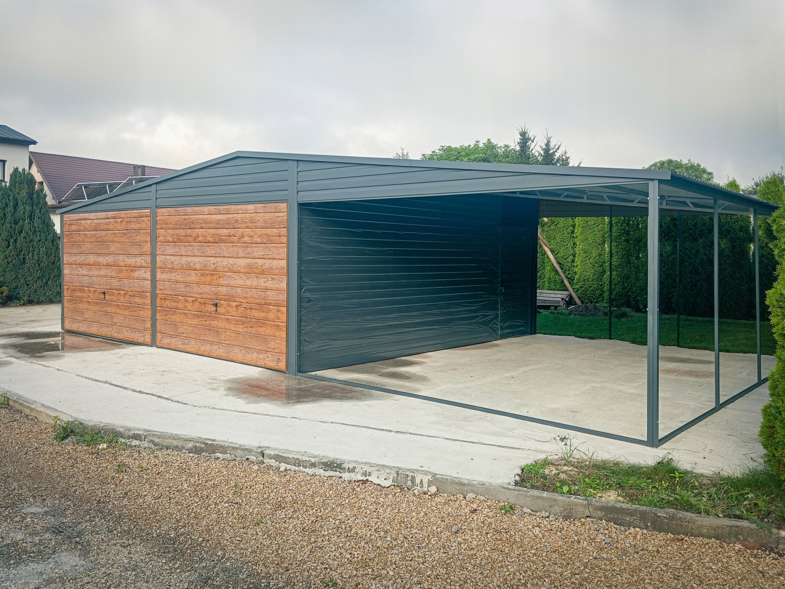 Олов'яний гараж з матовим притулком 9x6 м матовий + сільський дуб + ворота