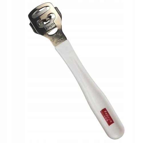 Пристрій для зрізання мозолів особливо ефективний у видаленні товстих шарів епідермісу. Він складається з міцної пластикової ручки та ножа з міцної хромованої сталі, а завдяки довжині 14 см ідеально лежить в руці. Прилад має контурну зручну ручку. Допомагає у видаленні мертвої та твердої шкіри. У набір входить одне лезо для бритви.