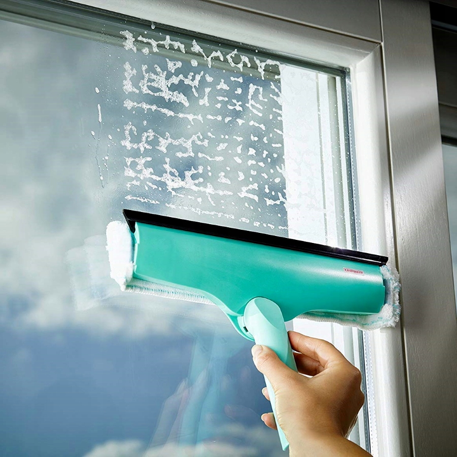 Телескопічна мийка вікон Leifheit Window & Frame Cleaner L дозволяє зручно та швидко очистити не лише важкодоступні вікна, а й їхні рами та кути. Сама шайба виконана з міцного пластику, а шток - з високоякісної сталі. Ця модель доповнена чохлом micro duo, що поєднує в собі два типи волокон, які ідеально видаляють будь-які види забруднень. Він перекриває бічні сторони мийки, тому одночасно очищає вікно, віконну раму та кути.