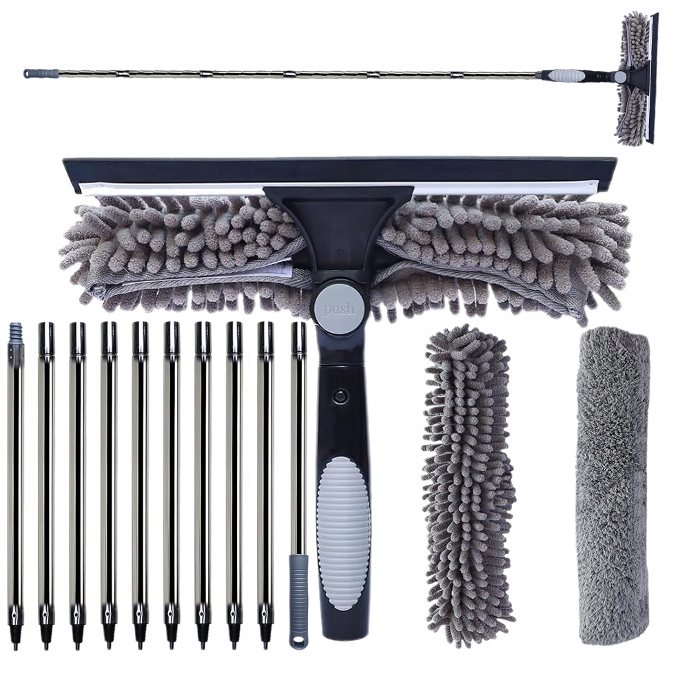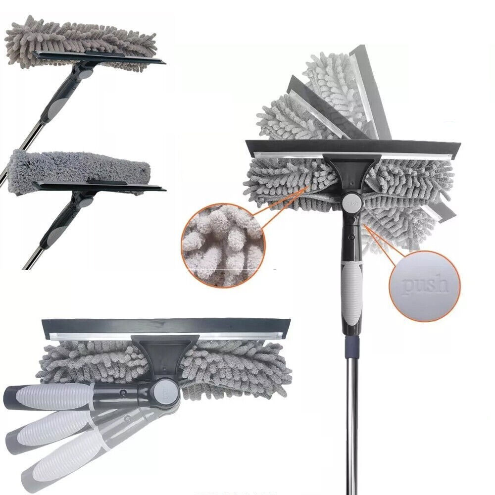 Легко відрегулюйте положення скребка натисканням кнопки. Ідеально підходить для миття нестандартних вікон і скла, скляних поверхонь, стін, дзеркал, автомобільних вікон, сонячних панелей і миття високих вікон всередині/зовні приміщення. Навіть чистка вашого човна стає дитячою грою!