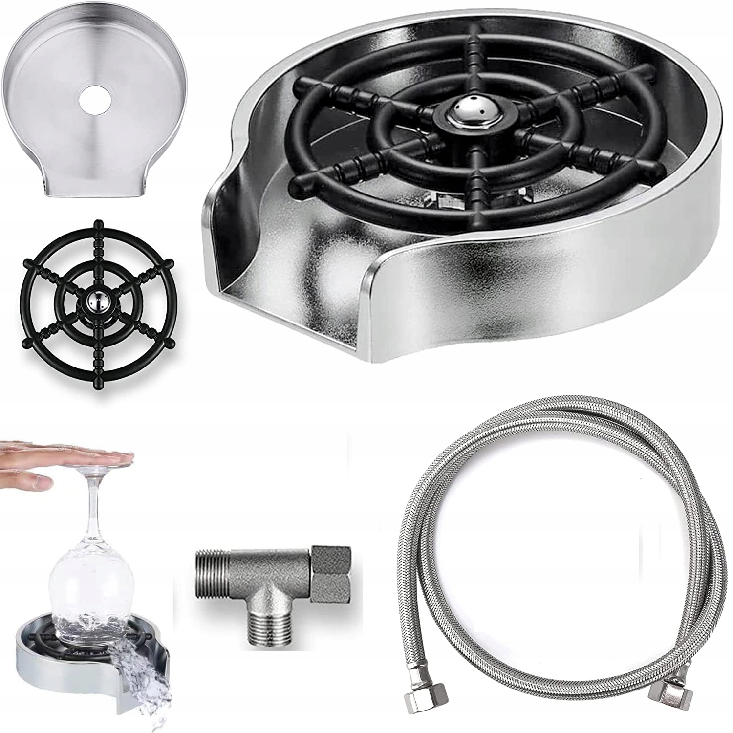 - - Це скло мийка для чашок корисна і універсальна. Просто встановіть його на кухонну раковину чи барну стійку, обережно натисніть на дно чашки, він може легко обполоснути більшість чашок, таких як склянки, кавові кухлі, бокали та дитячі пляшечки, зручний у використанні та чищенні. Ідеально підходить для барів, ресторанів, кухонних мийок тощо, хороший помічник на кухні.