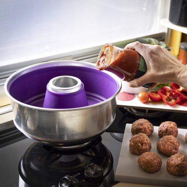 Силіконова форма OMNIA Maxi 3L у фіолетовому кольорі Силіконова форма OMNIA як вкладиш у форму для випікання - для ще більш легкого приготування та випікання. Дизайн форми та посилений матеріал форми зі стабілізуючою кромкою полегшують приготування їжі в кемпінговій печі OMNIA. Силіконову форму особливо легко мити, а випічку можна легко вийняти з форми. Наприклад, завдяки якісному та гнучкому силікону готові тістечка можна просто видавлювати з форми. Характеристика: матеріал: силікон діаметр: 25 см висота: 9 см термостійкість від -60°C до +260°C