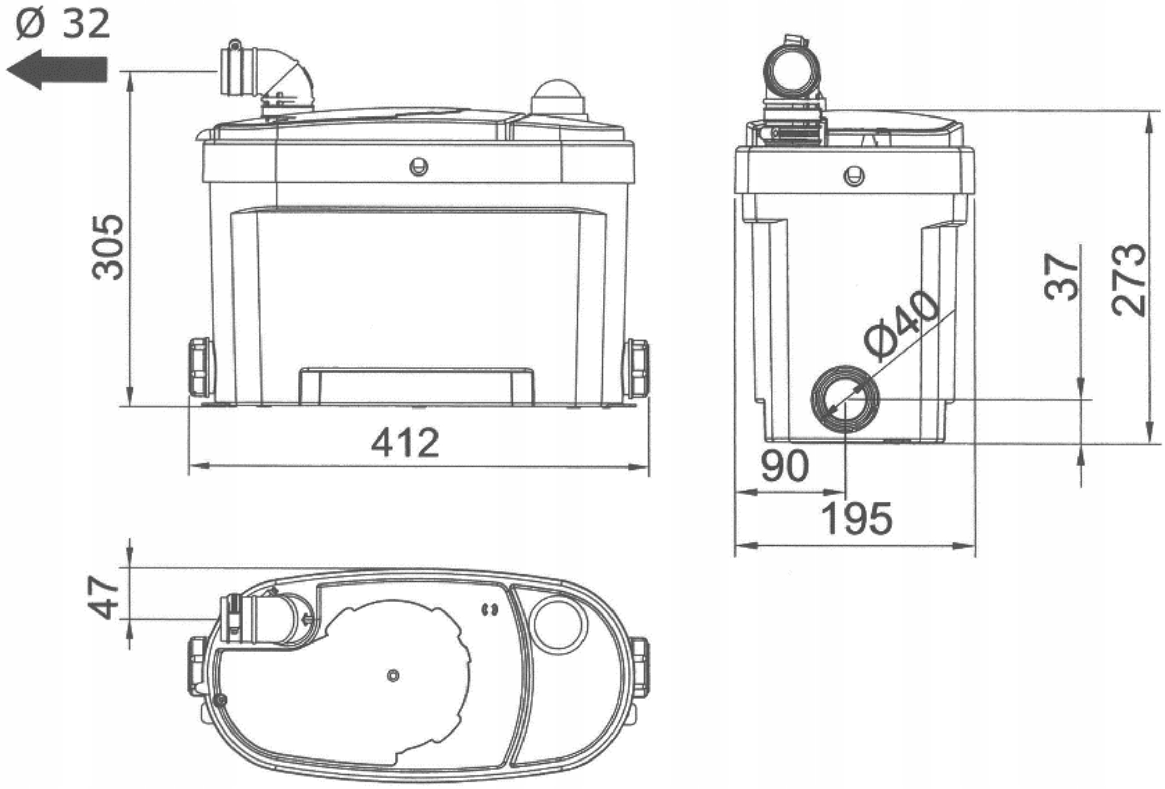 Пристрій дозволяє відводити нечистоти з: умивальника, раковини, душу, біде, пральної машини, ванни, посудомийної машини, де це неможливо зробити через гравітаційну установку.