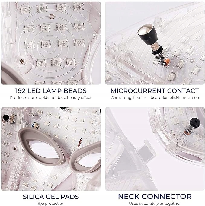 - WQU Led Mask: 1 пульт дистанційного керування в комплекті з максимальним використанням 6 годин використання, 7 кольорів маски зі світлодіодним підсвічуванням, 1 захист для очей маска, 1 USB-кабель живлення, легке перемикання між кольорами, l інтенсивність L, вбудований таймер.