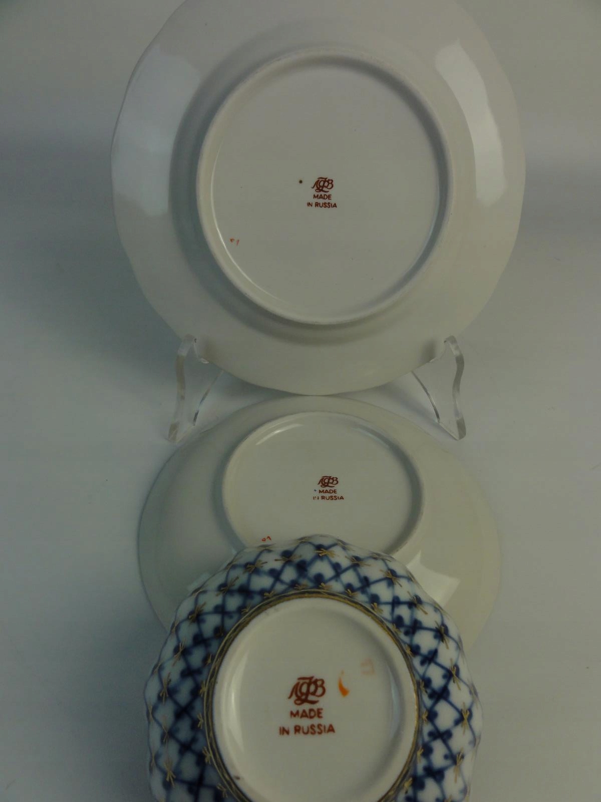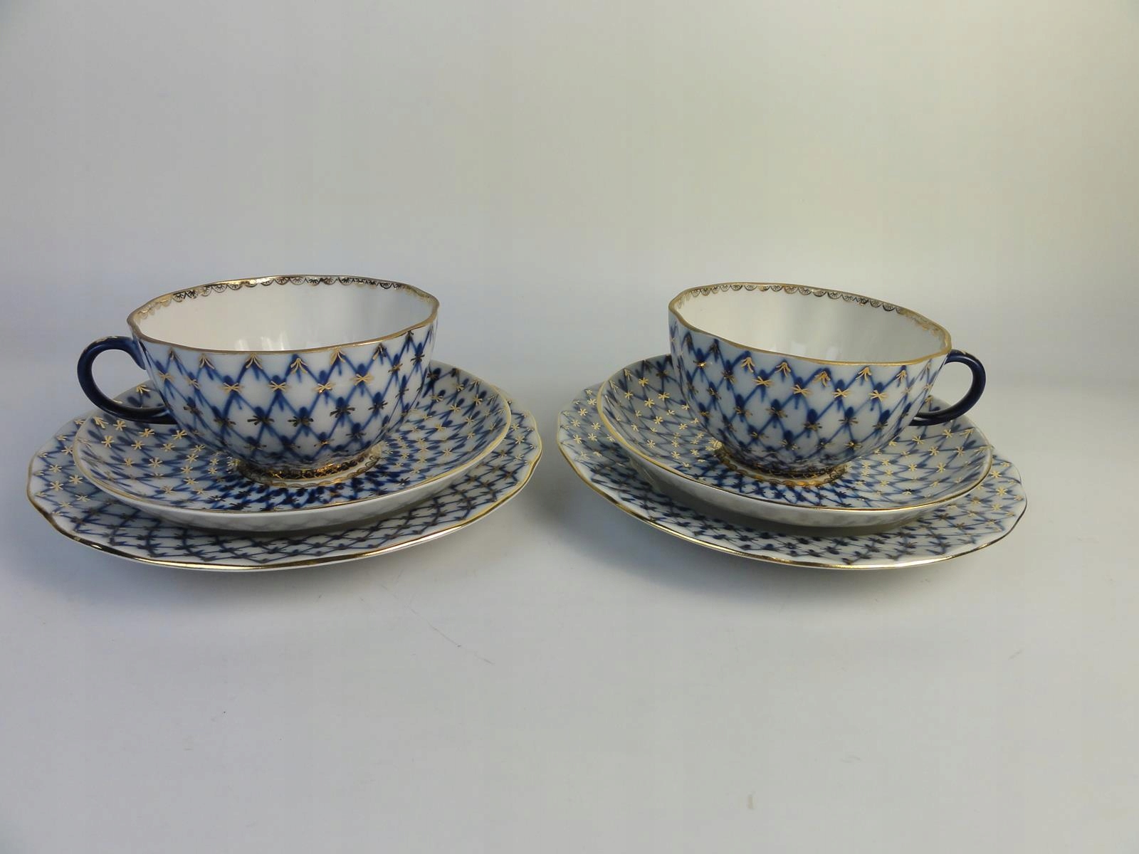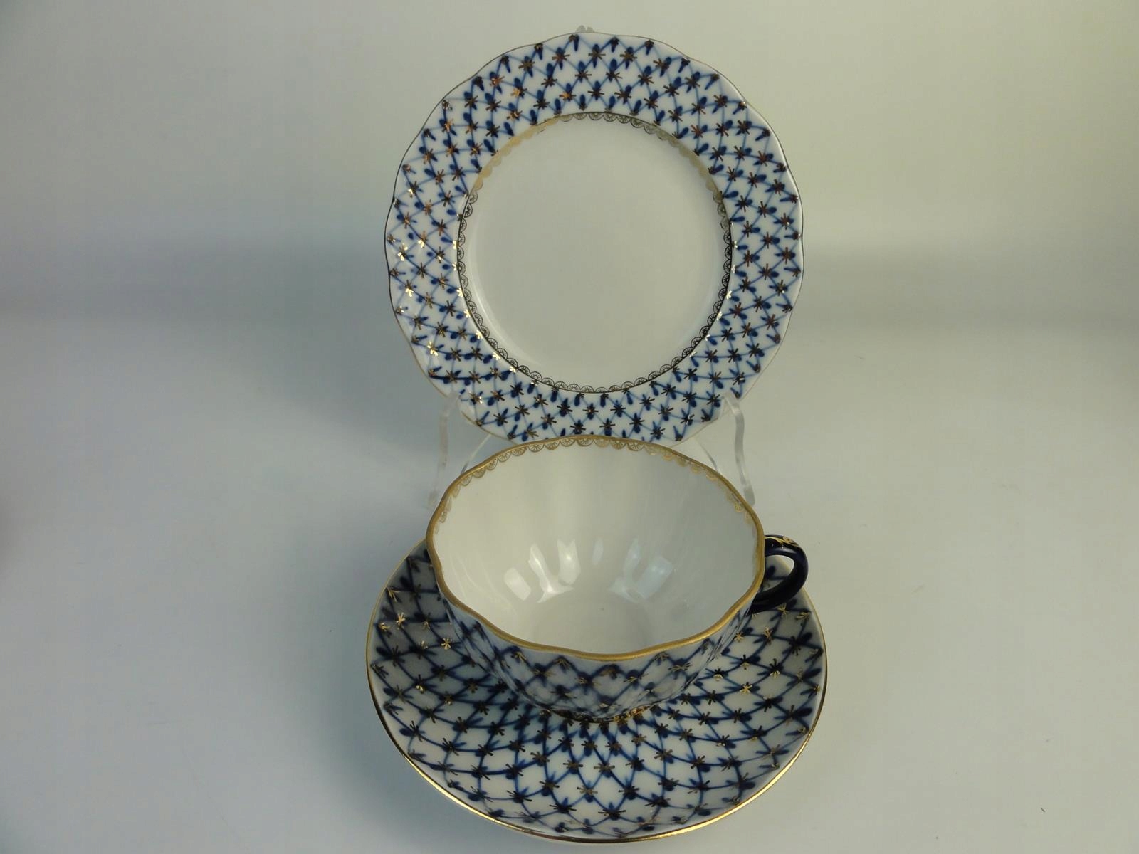 ŁOMONOSOW - KOBALTOWA SIATKA - ZESTAW ŚNIADANIOWY - TRIO HERBACIANE