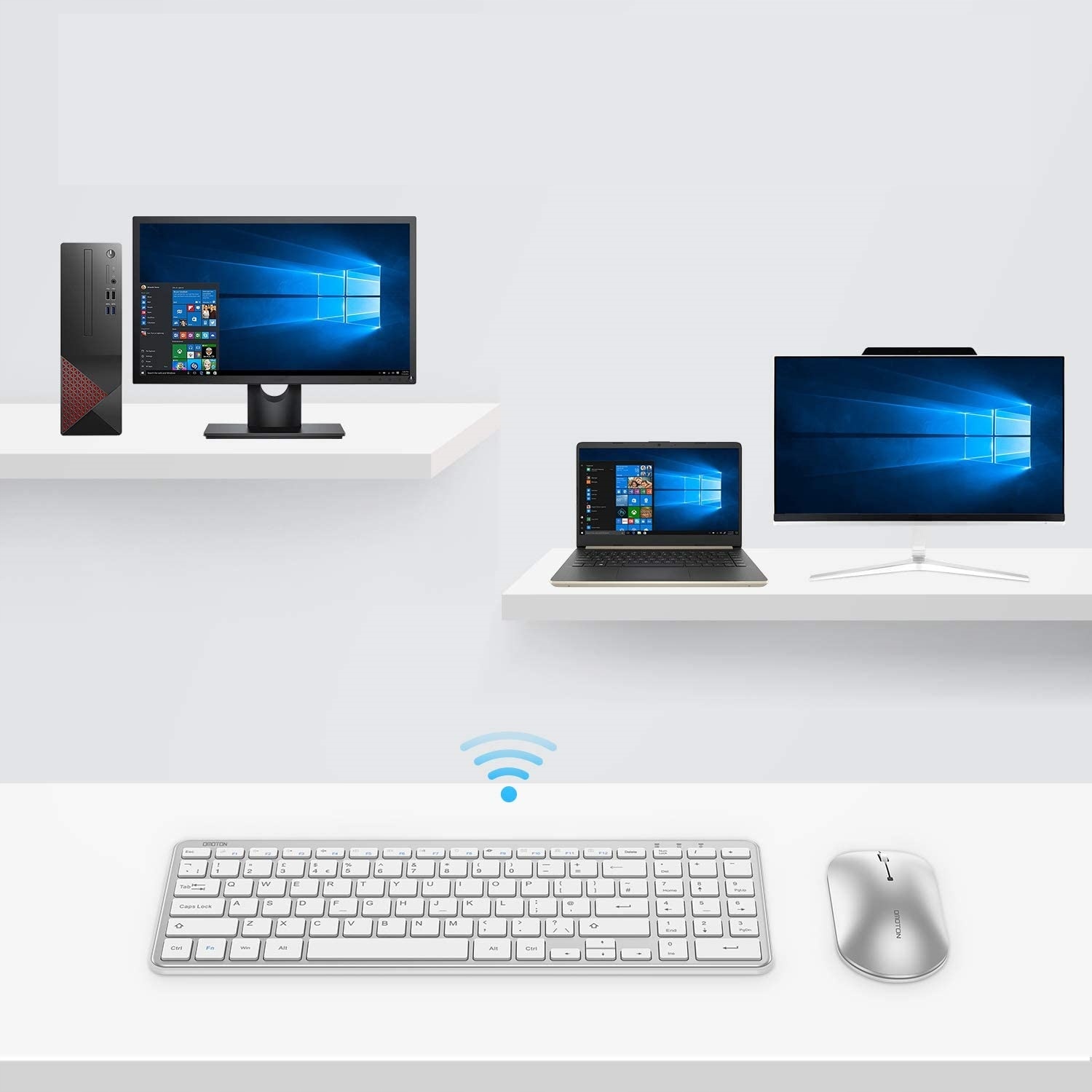 Просте налаштування: набір клавіатури та миші Omoton 2,4 ГГц забезпечує надійність і швидкість бездротового з’єднання 2,4 ГГц (10 метрів) . Клавіатура та миша мають спільний невеликий USB-приймач. Просто підключіть до порту USB і почніть користуватися.
