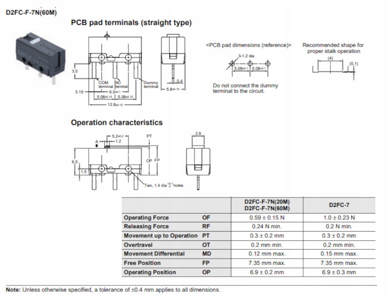 OMRON D2FC-F-7N (60M) Мікро-перемикач