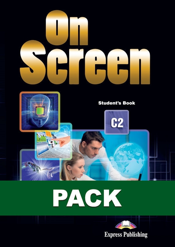 Посібник On Screen C2 складається з восьми тематичних модулів і розділів CLIL/Culture, збірника граматики (Grammar Reference) та англо-англійського словника (Word List). Кожен модуль складається з наступних розділів: читання, словниковий запас, граматика, що використовується, навички аудіювання, навички говоріння, письмо, знання мови, орієнтація на мову та перевірка прогресу.
