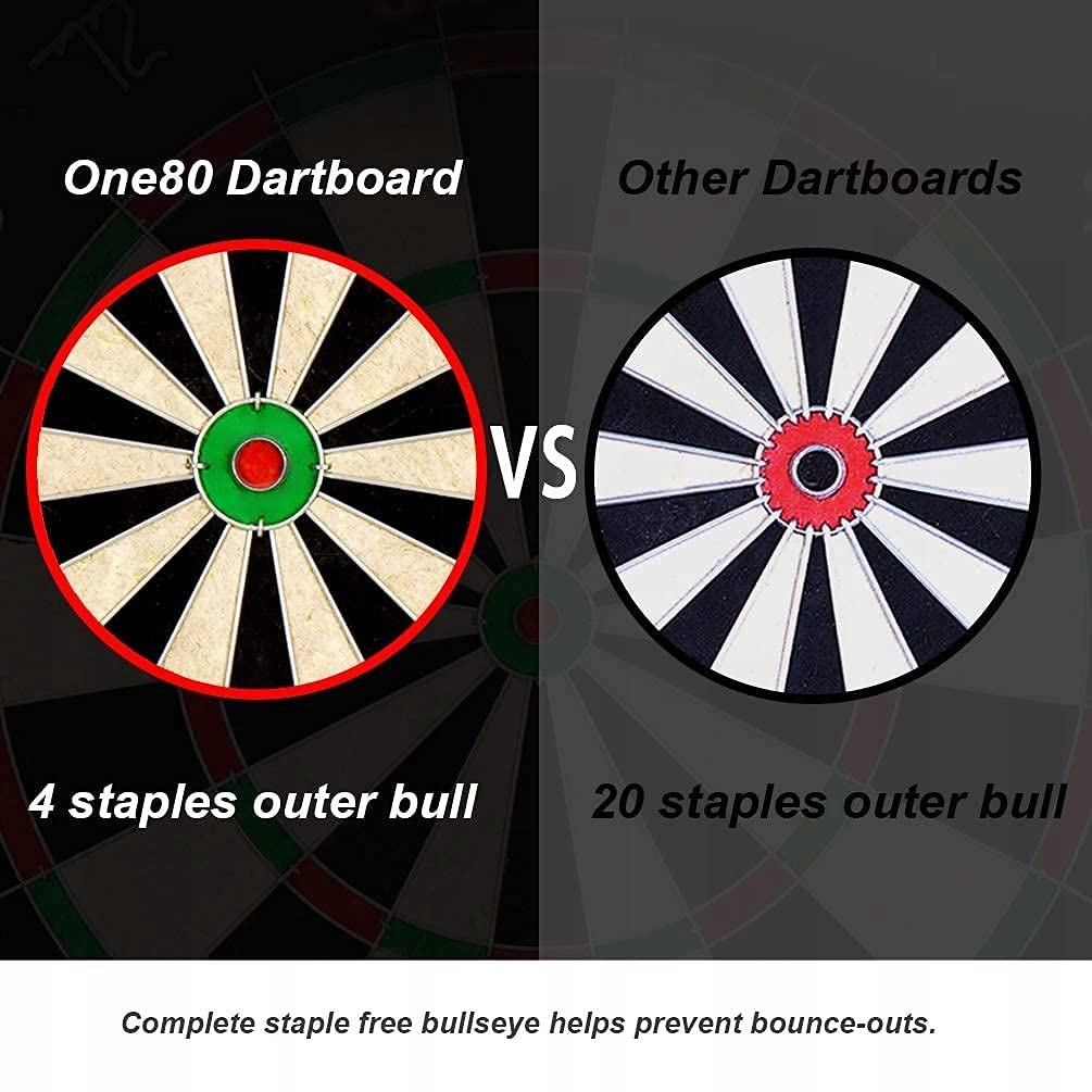 Відкрийте досконалість у грі DART з професійним щитом з професійної досконалості One80. Щит з діаметром 45 см і товщиною 3,8 см відповідає найвищим професійним стандартам та забезпечує чудову якість націлювання. Набір містить 6 дартс, 6 ручок та 24 стулки, ідеально підходить для тренувань та ігор.