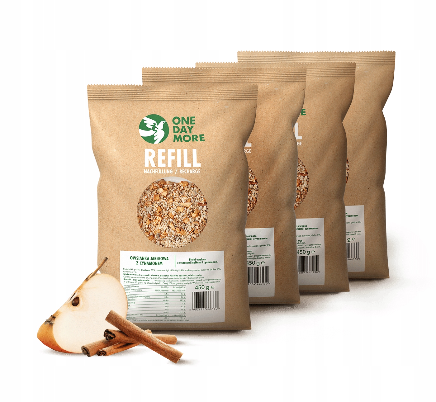4x450g Refill Яблучна вівсяна каша з корицею без цукру