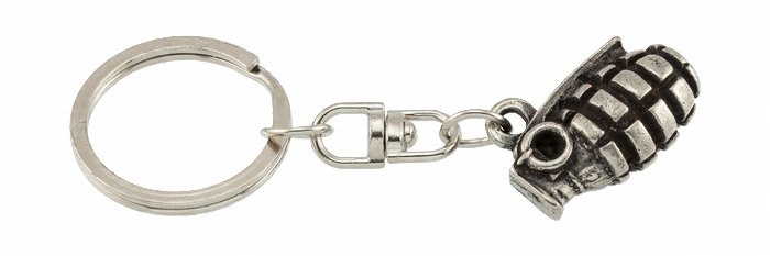 Тут ми представляємо брелок із зразком польської оборонної гранати. 33. Частина партизанських гранат походила з довоєнних запасів - серед них були: оборонний візерунок 33. Брелок виготовлений з металу, сріблясте покриття. Загальна довжина разом з кільцем - 7,5 см.