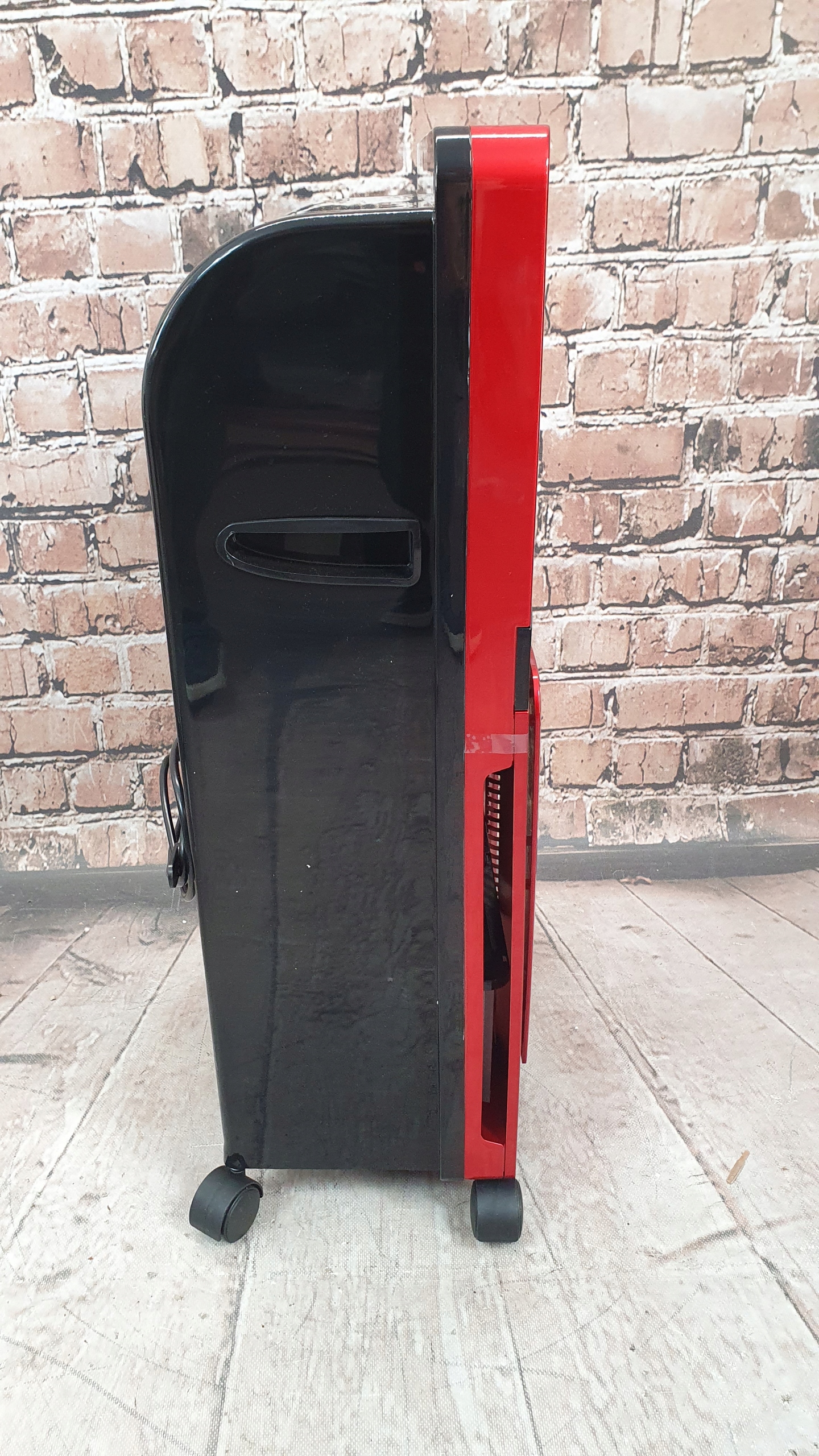 помітно і постійноЩе одна перевага онеконцептичного повітряного охолодження - це загальна відсутність обмежень при його встановленні. Він не має вихлопного шланга, і, таким чином, не потрібно розміщувати біля вікна, щоб стікати гаряче повітря. 4 Транспортні колеса та пара ручок, розміщених з боків пристрою, дозволяють транспортувати та перенести без проблем.
