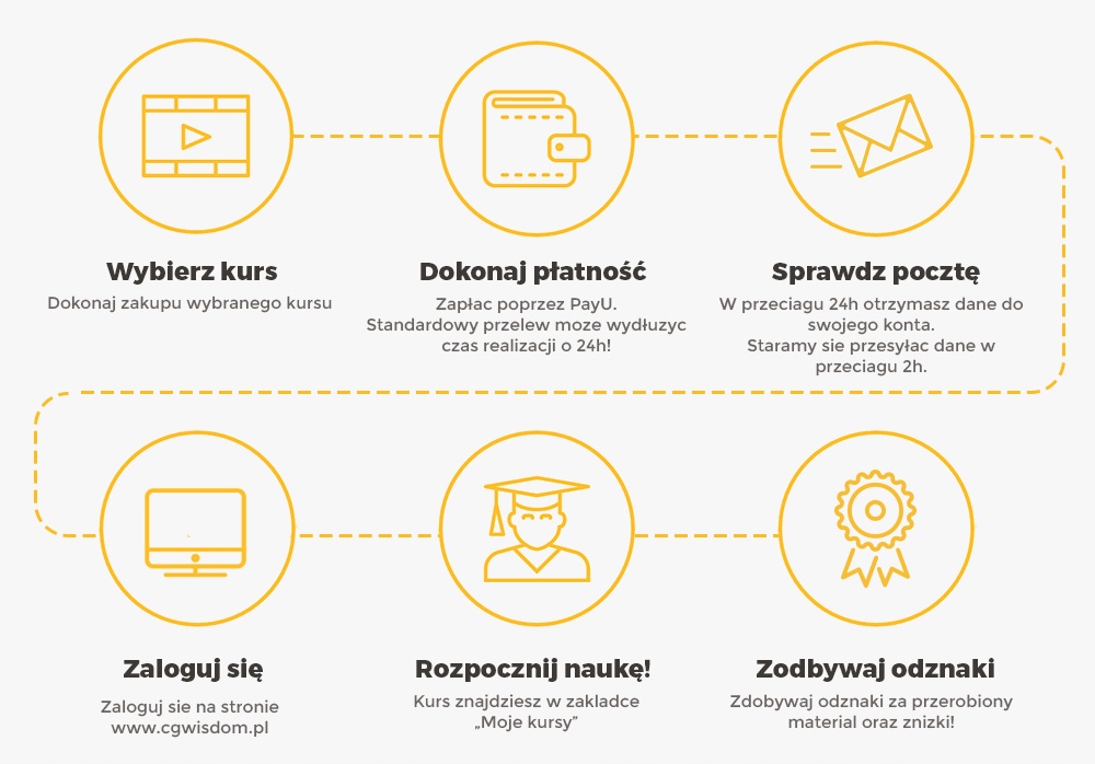 - Курс буде доступний для перегляду безпосередньо на веб-сайті cgwisdom pl або завантажений на ваш комп’ютер.