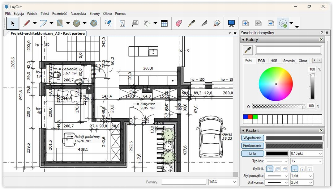 Макет дозволяє працювати за шкалою, розмірністю, вибором товщини лінії та підготовки повних документів для друку. Кидки, перехрестя та фасади генеруються автоматично на основі моделі Sketchup, яка суттєво прискорює весь процес.