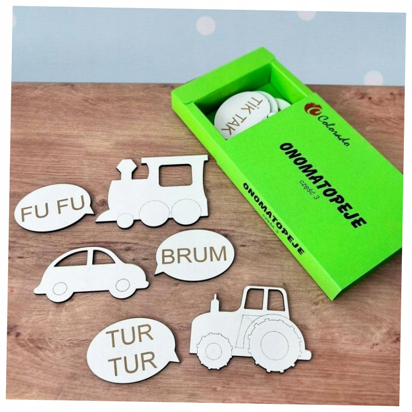 Number of elements: 14 pieces (7 elements, 7 clouds) Interior dimensions of the box: 12.5x 10cmmateriaal, from which the elements were made: HDF with a thickness of 3 mm thick on the elements: express BAM BAM, Tur Tur, BRUM, EO, FU FU, TIK YES, laser engraved plum