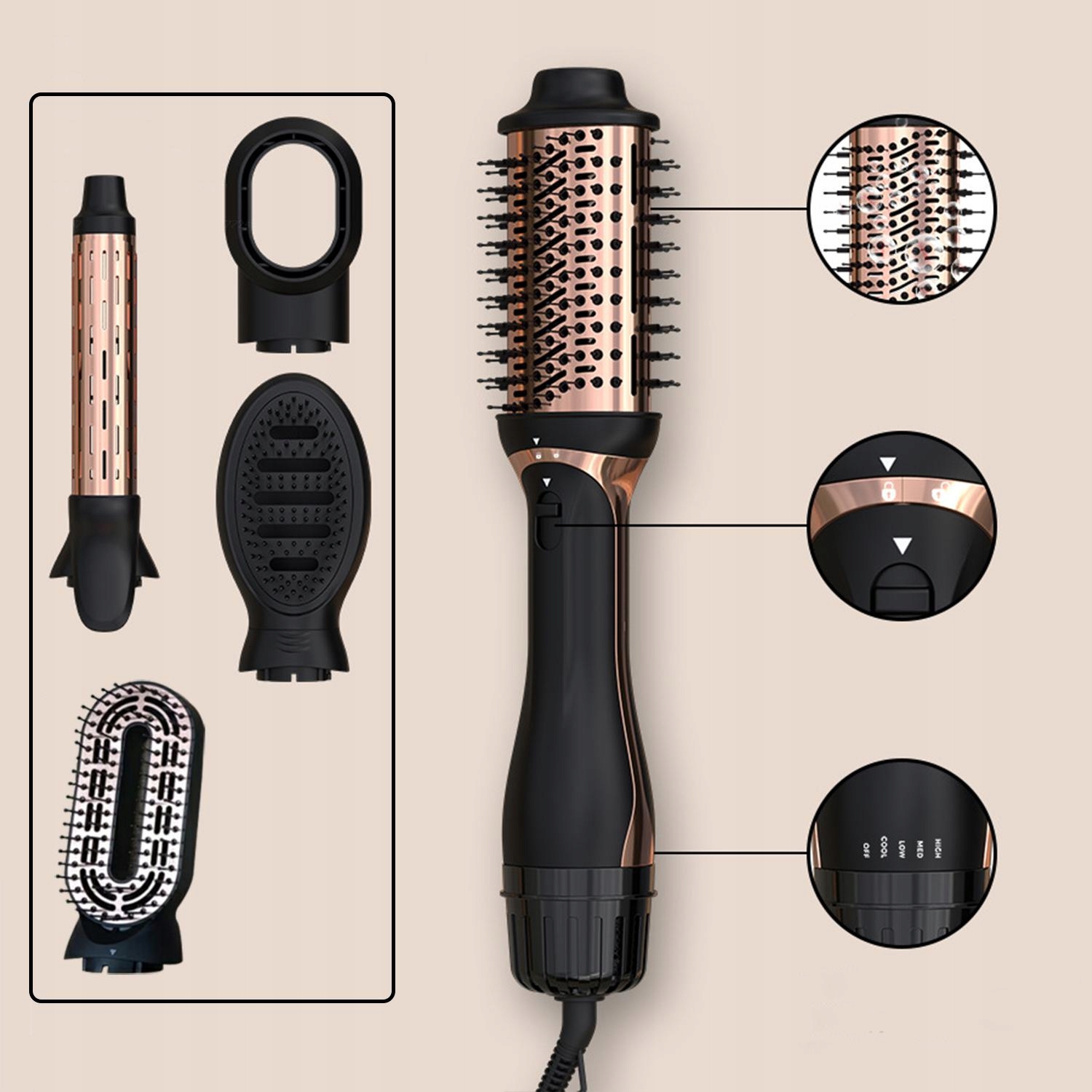 1. За допомогою трьох різних насадок для волосся ви можете сушити, випрямляти та укладати волосся. Це ідеальний вибір для кожної жінки, яка хоче досягти салонних результатів, не виходячи з дому! Завдяки передовій технології та продуманому дизайну ви можете легко створити ідеальну зачіску.