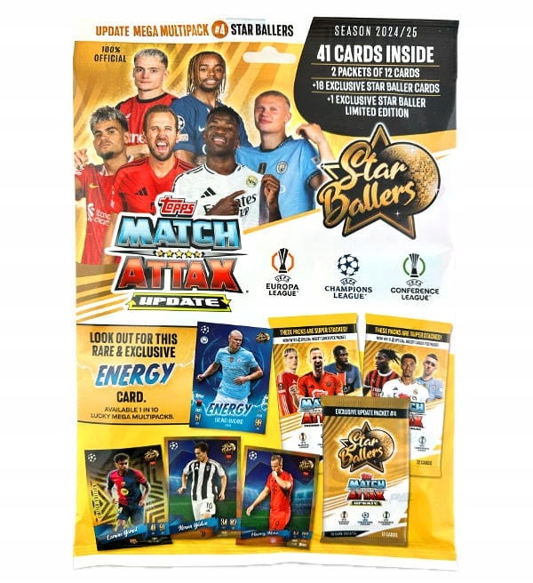⚽ Ця мультиупаковка також є шансом знайти дуже рідкісну та обмежену картку ENERGY Star Ballers - Erling Haaland (яку виробник додає в середньому в кожну 10-у упаковку мультиупаковка).