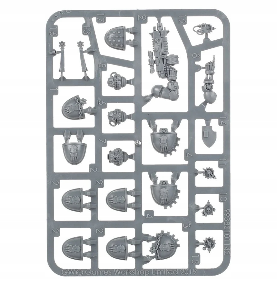 - 5 наплічників силової броні Iron Hands MK X (призначені для використання з Hellblasters/Intercessors)