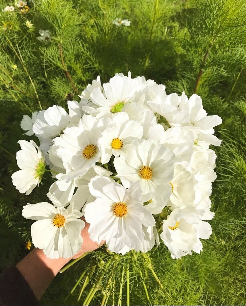 Космос, тобто онетки, — це квіти з м’якими, ниткоподібними, зеленими і пір’ястими листками, схожими на кріп. У них дуже низькі вимоги, але вони красиво цвітуть все літо. Космоси пишно цвітуть вражаючими розкритими барвистими кошиками. І листя, і квіти є декоративним доповненням літніх, сільських букетів. Ідеально підходить для посадки натуралістичних садів, для високих клумб і як зрізані квіти. Цвіте з липня до перших заморозків. Сподобався бджолам. Сорт Purity досягає 90 см у висоту і має чисто-білі квіти. Вага: 0,2 г