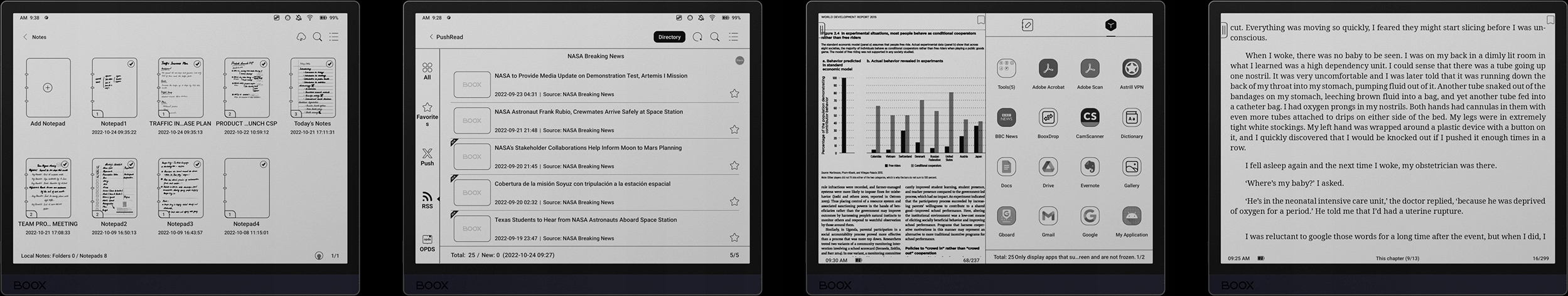 Насолоджуйтесь розумним і ефективним планшетом із дисплеєм E-ink. Операційна система Android 11, пам'ять 4 ГБ + 128 ГБ і слот для карт пам'яті microSD, а також потужний вбудований NeoReader дозволяють встановлювати різні програми, зберігати кілька файлів і читати документи в різних форматах. Ви можете підписатися на свій улюблений канал RSS і навіть використовувати дві програми одночасно на розділеному екрані. Усе робиться в одному пристрої.