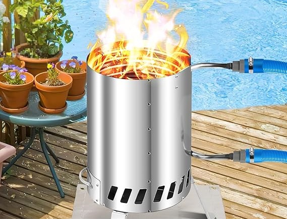 Це поліпшене нагрівання басейну з нагрівальною трубою з діаметром 1,8 см і частотою серцевих скорочень діаметром 31 см. Обігрівачі басейну виготовлені з нержавіючої сталі, міцні, нержавіючі та стійкі до високих температур до 300 ° С. піч з нержавіючої сталі більш міцна, ніж залізні або мідні відра і тривають протягом багатьох років, навіть якщо вони зберігаються на вулиці.