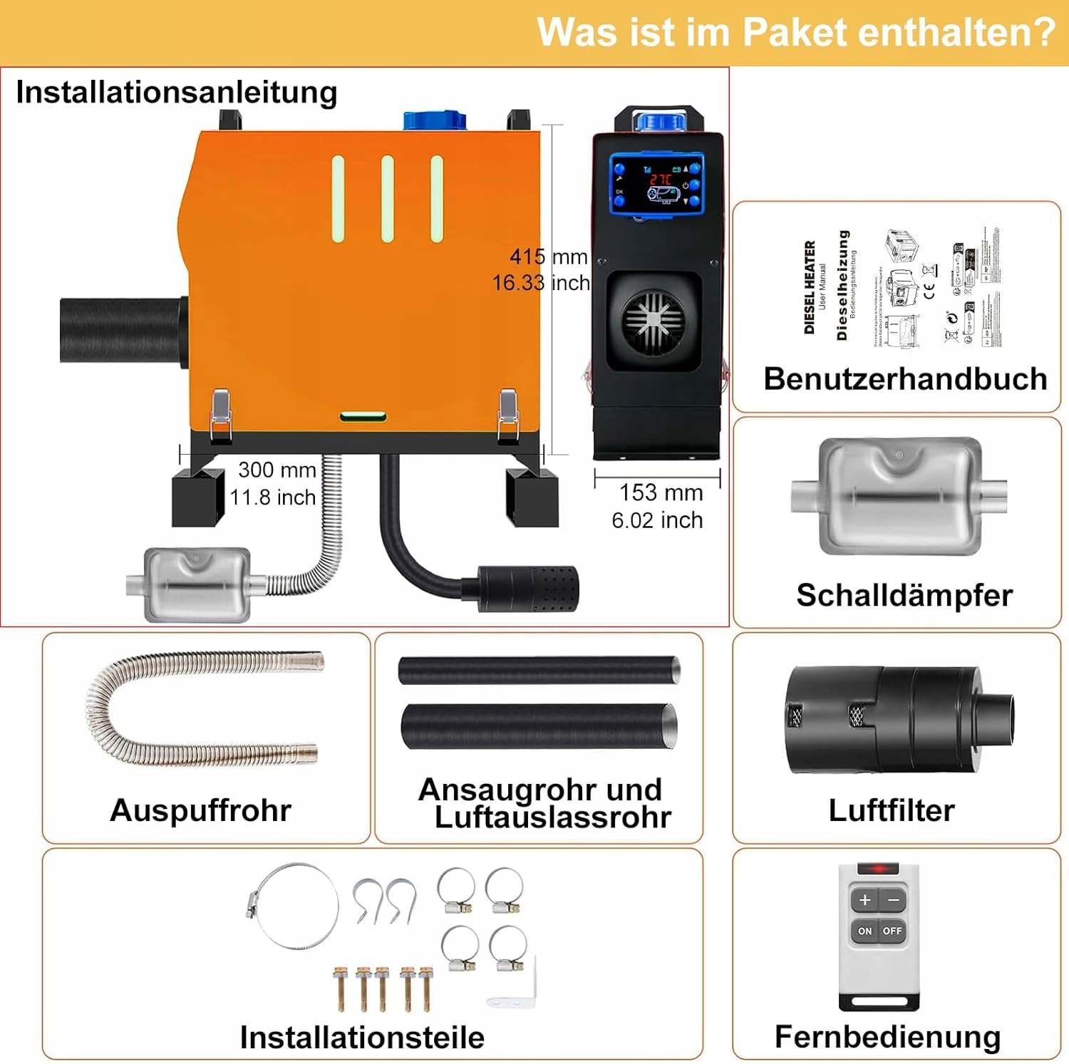 - Легка установка: Опалення для дизельного дизеля може гнучко встановити внизу кабіни, валізи або контейнера. Набір завершений і містить усі необхідні частини, шланги та інструменти. Обсяг доставки включає детальний посібник користувача (він може бути недоступним мовою, ви також можете сканувати QR -код, щоб відобразити підручник з встановлення. Портативні нагрівачі портативні та їх можна легко видалити та відновити, коли вам потрібно змінити транспортний засіб