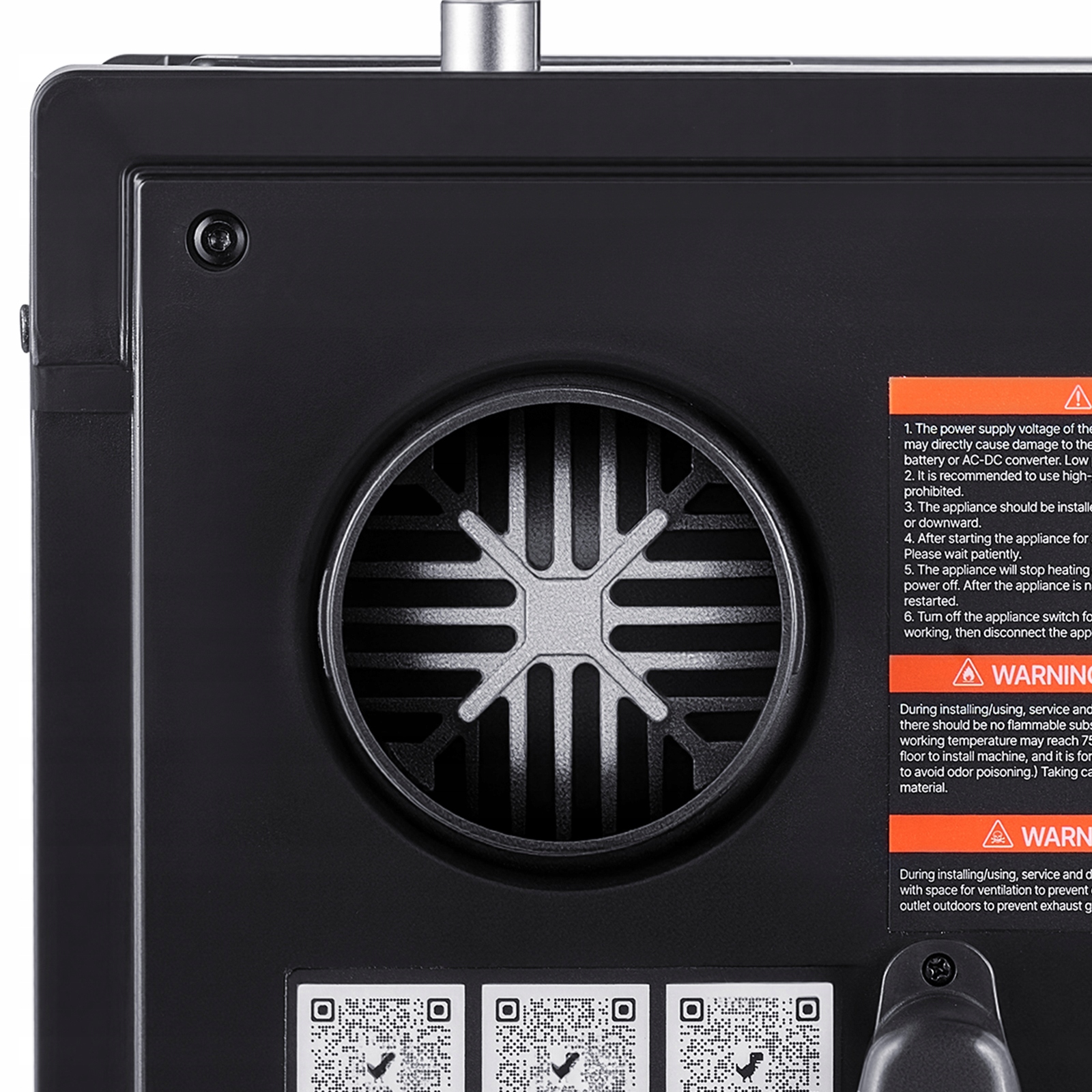 Функції безпеки: Цей нагрівач повітряного масла оснащений сигналізацією CO, тепловою кришкою вихлопної труби та герметичною кришкою наповнювача палива, що забезпечує безпечне, довгострокове використання. Внутрішня друкована пластина має захист від перегріву (вище 280 ° C/536 ° F), захист від зворотної поляризації та захисту від перенапруг.