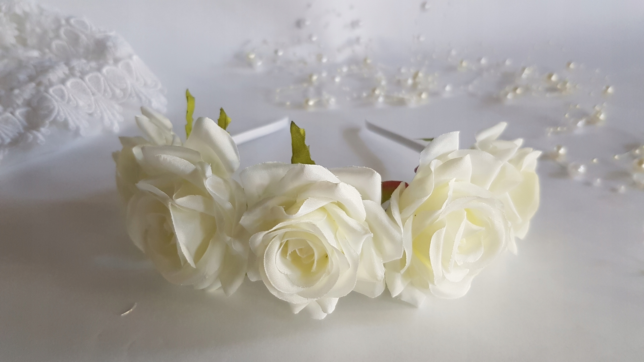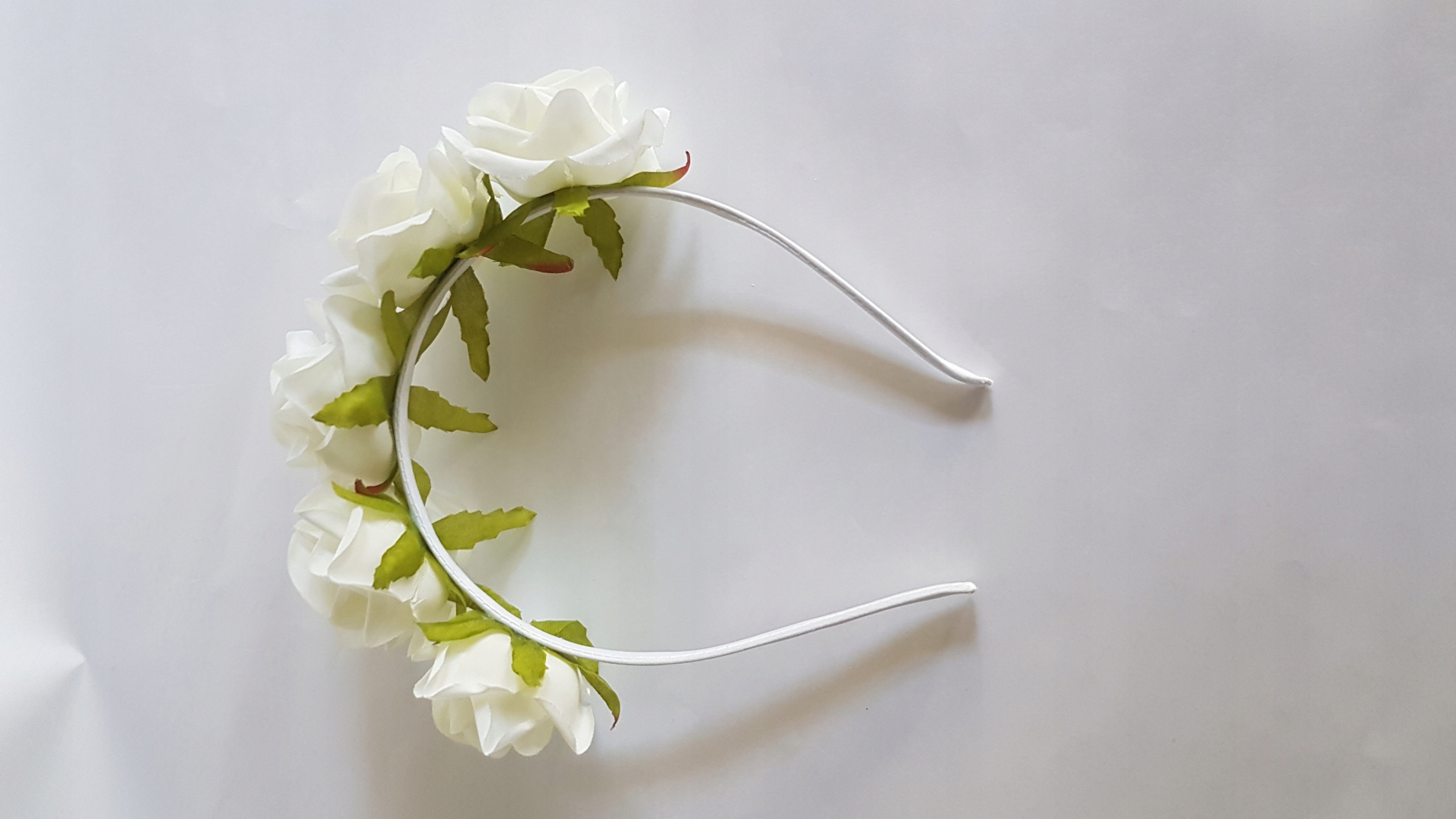Предмет продажу пов'язка з квітами з додаванням зеленого листя,