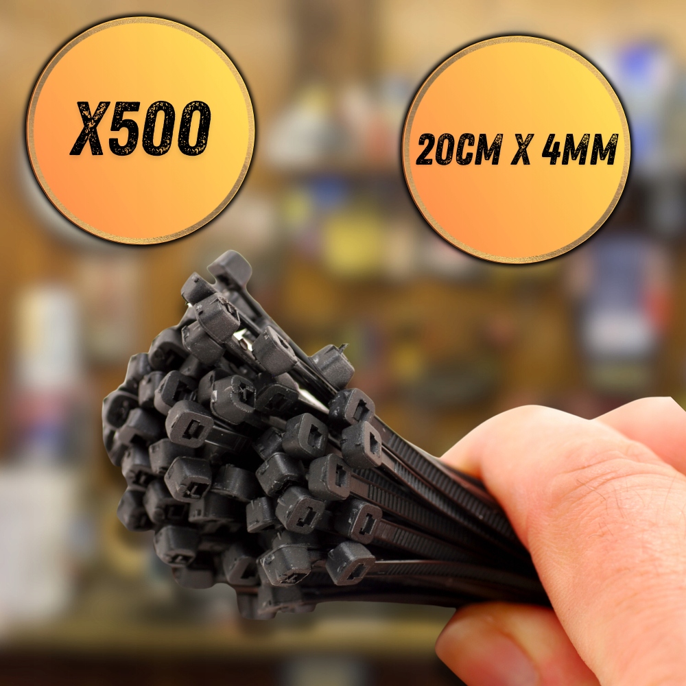 Чорні кабельні стяжки 200x4 мм з нейлону, 500 шт.