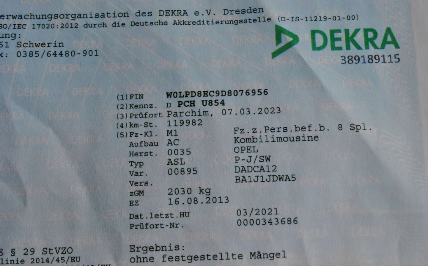 Легенда сервісу, яку підтверджує VIN № в Opel Aso