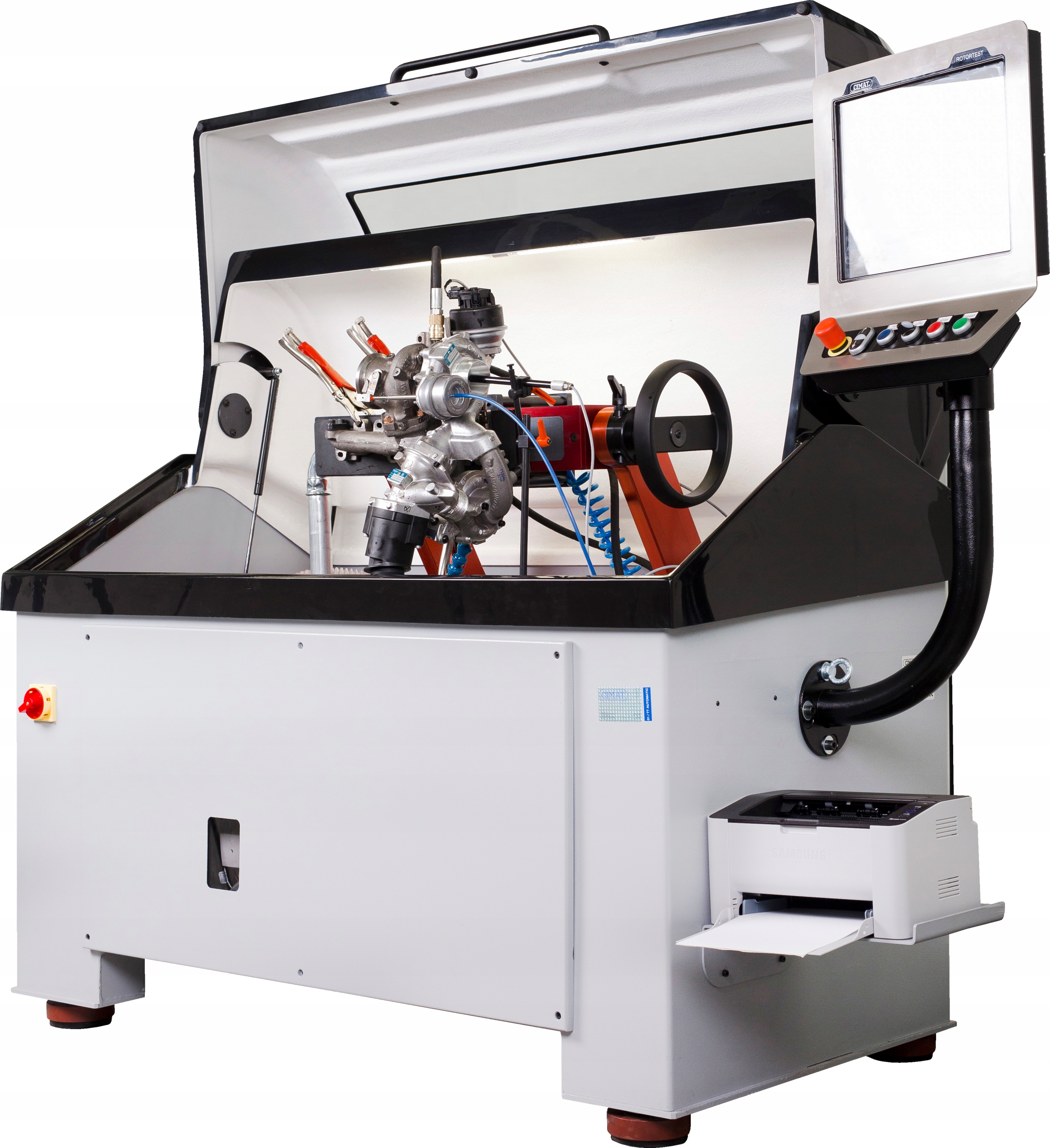 Пристрій для перевірки та регулювання систем із змінною геометрією та для вимірювання ефективності турбокомпресорів. Машина має можливість налаштування пневматичних та електронних приводів відповідно до специфікацій виробника. З точки зору належної роботи змінної геометрії та ефективності тиску турбокомпресор не відрізняється від заводського нового турбокомпресора.