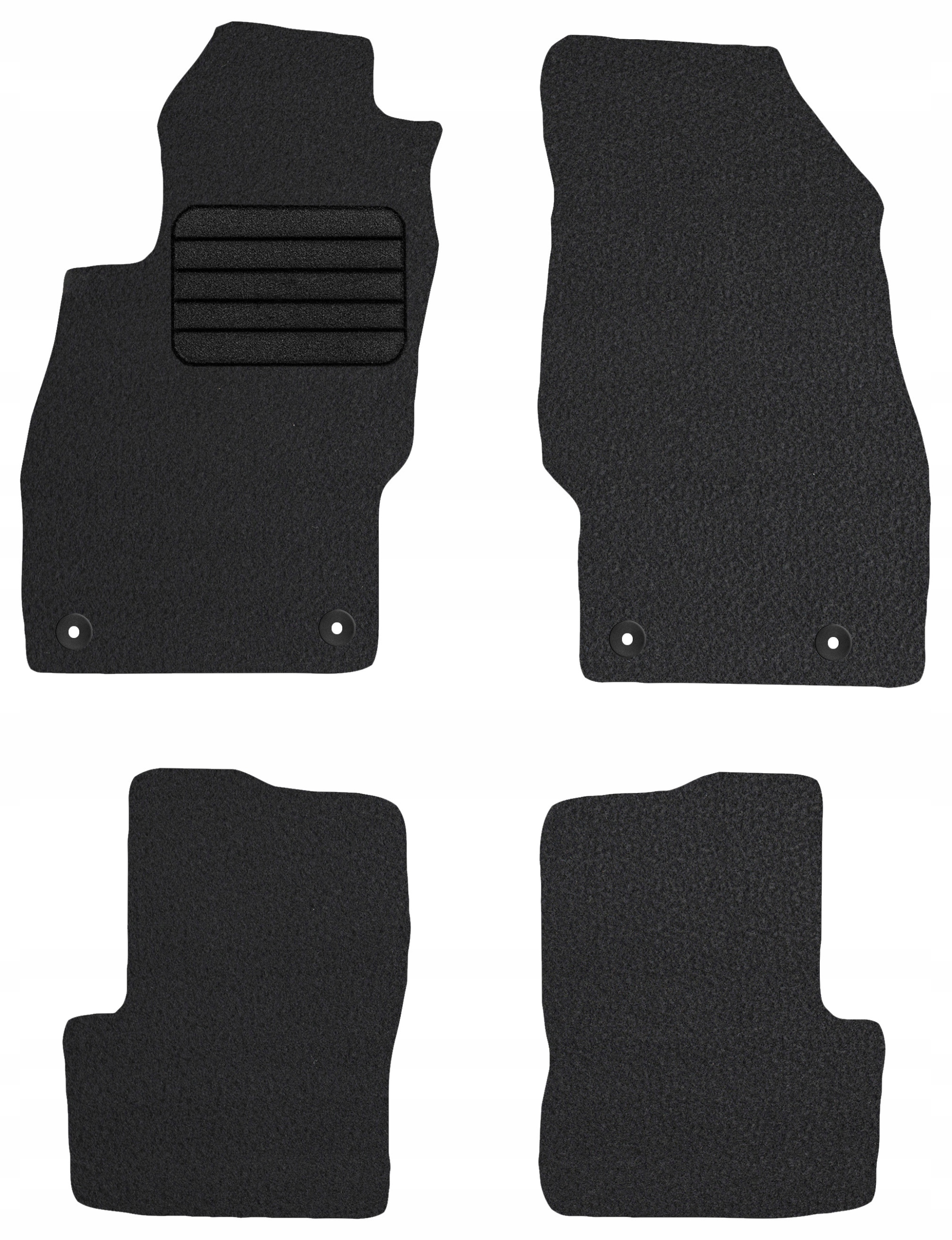 Наші автомобільні килимки завжди постачаються з монтажним набором, адаптованим до певної марки/моделі автомобіля. Кріплення, встановлені в килимках, ідеально відповідають штифтам, встановленим в автомобілі на заводі - форма і тип кріплень представлені нижче. Водійський килимок завжди повинен бути прикріплений до підлоги автомобіля, а кріплення пасажирського або заднього килимка залежить від конструкції такого рішення виробником даної марки автомобіля.