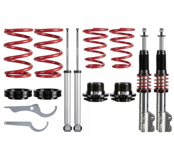 високоякісні основні амортизатори основного класу! Набір різьбових амортизаторів, розроблених спеціально для даного транспортного засобу, забезпечуючи безпечний, спорт та зручний для прилипання до дороги. Редлайн -різьбові амортизатори - це повне рішення для кожного автомобіля, яке забезпечує ідеальний баланс між спортивним персонажем та можливостями дорожнього руху. Налаштування висоти здійснюється в побудованому стані і забезпечує вашій машині індивідуальним зменшенням тіла. Набори мають величезне поглинання поперечної сили, забезпечуючи більшу стабільність на кожному дорожньому вигині.