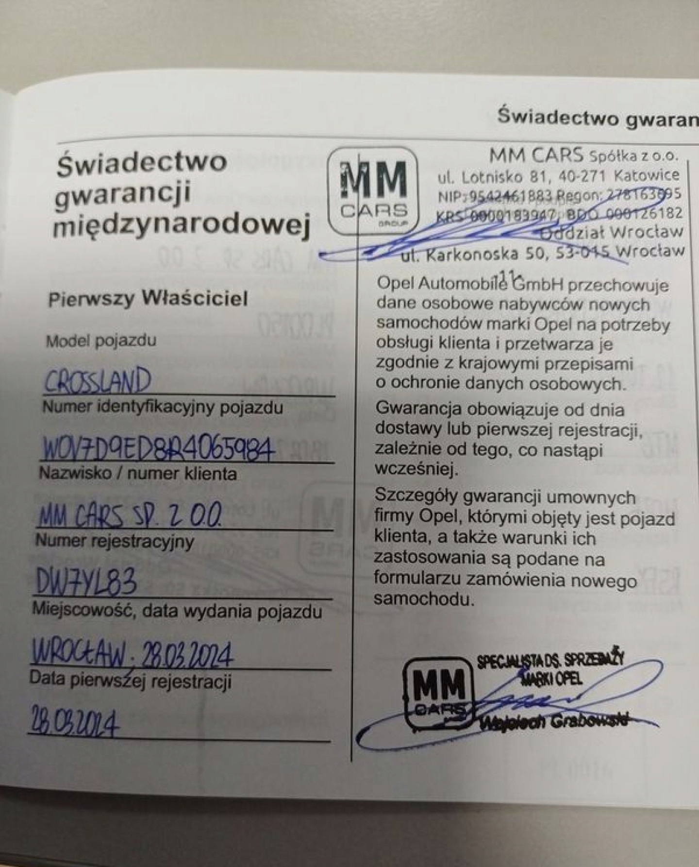 VIN: WOV7D9ED8R4065984