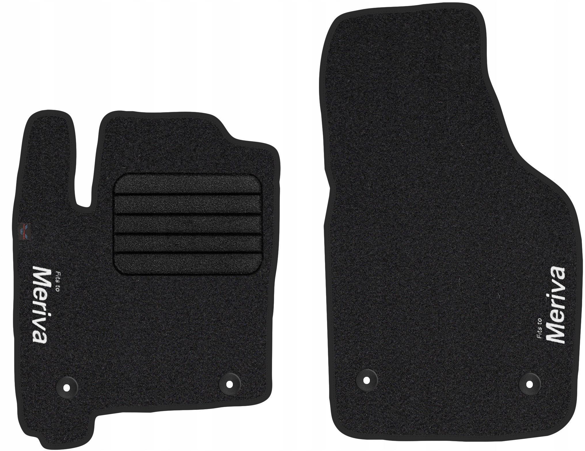 Інформація «Meriva» надрукована на передніх килимках методом прямої вишивки. Завдяки сучасному виробництву та використанню високоякісних матеріалів і ниток, вишивка на килимках є довговічною та естетичною, що також позитивно впливає на вигляд килимків в салоні автомобіля. Зміст напису на килимках відповідає основному фото (в залежності від моделі або марки автомобіля), а над написом вишуканим шрифтом розміщено напис «Підходить до», який повідомляє про призначення матів.